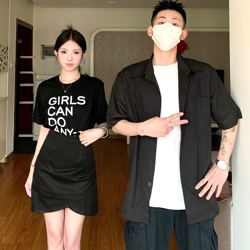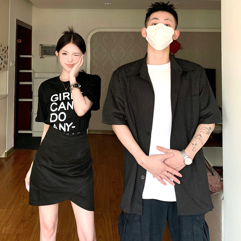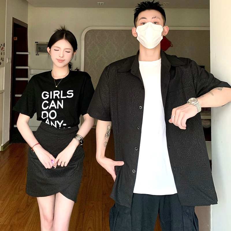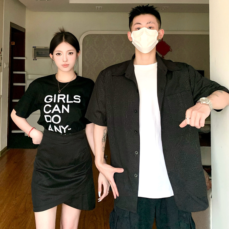 | nameOriginal | Couple's 2024 Summer New Printed T-Shirt Women's Skirt suit Niche Outfit Black Shirt Men |