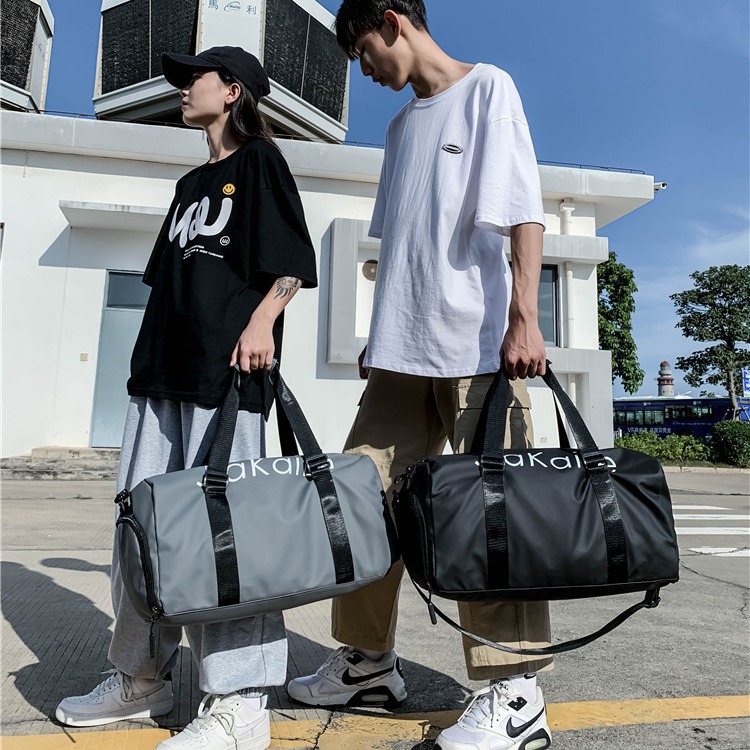 Couple’s Outdoor Large Capacity Travel Bag Dry and Wet Separate Letter Gym Bag Lightweight Boarding Bag Handbag Duffel Bag