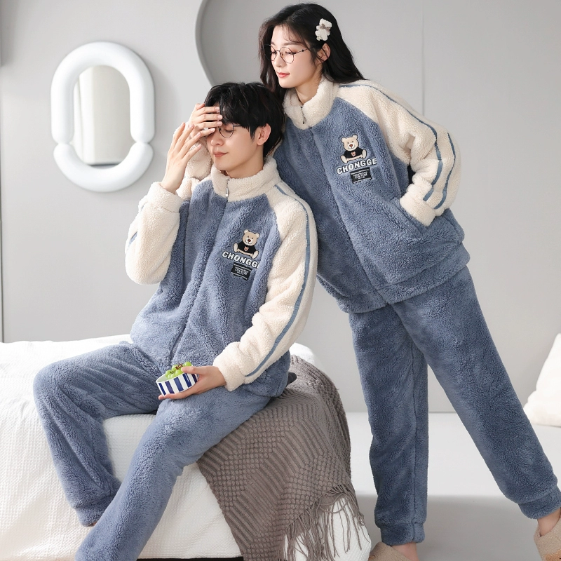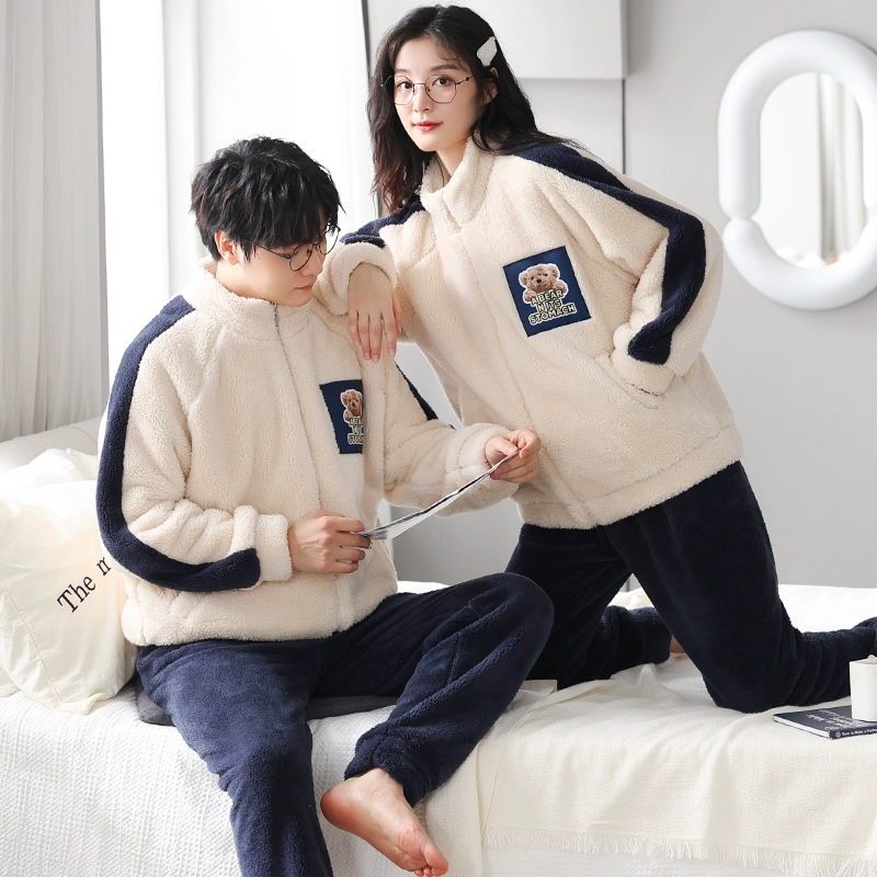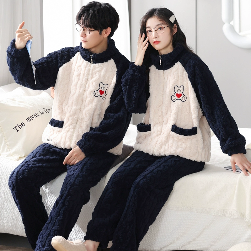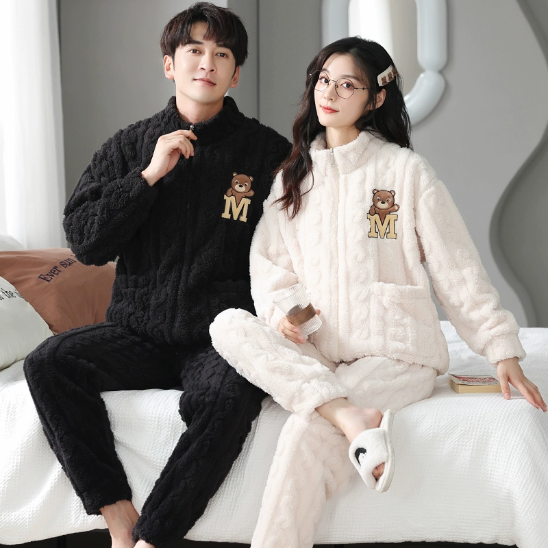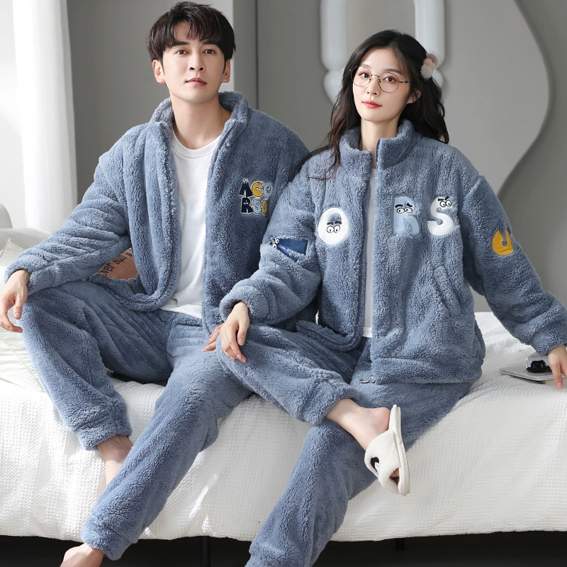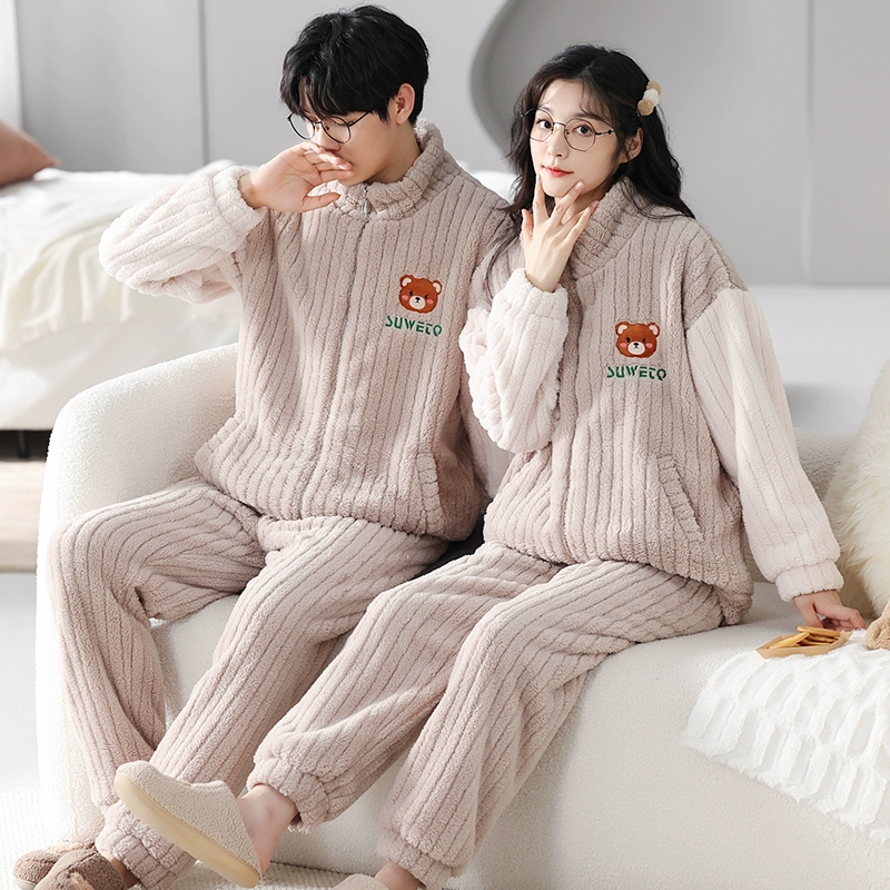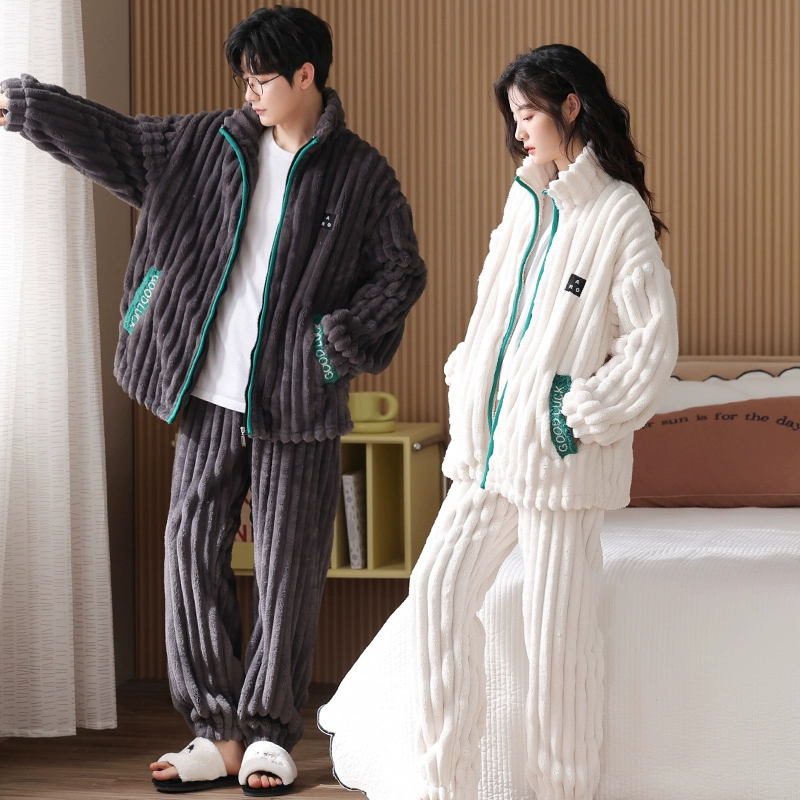 | nameOriginal | Couple's pajamas winter 2024 new coral velvet plus velvet thickened men's and women's warm vertical pattern home clothes autumn and winter styles |