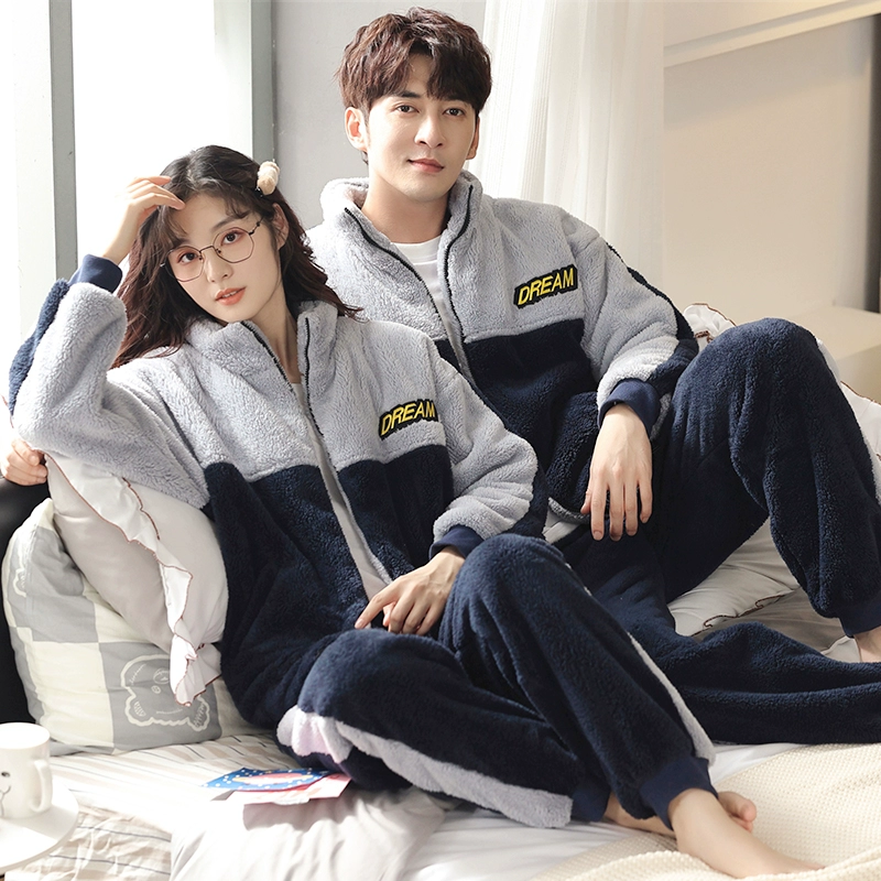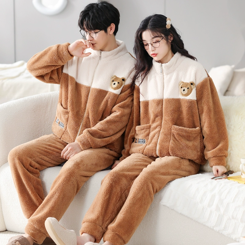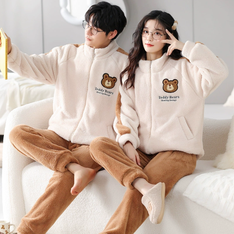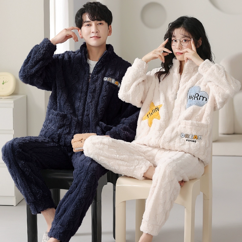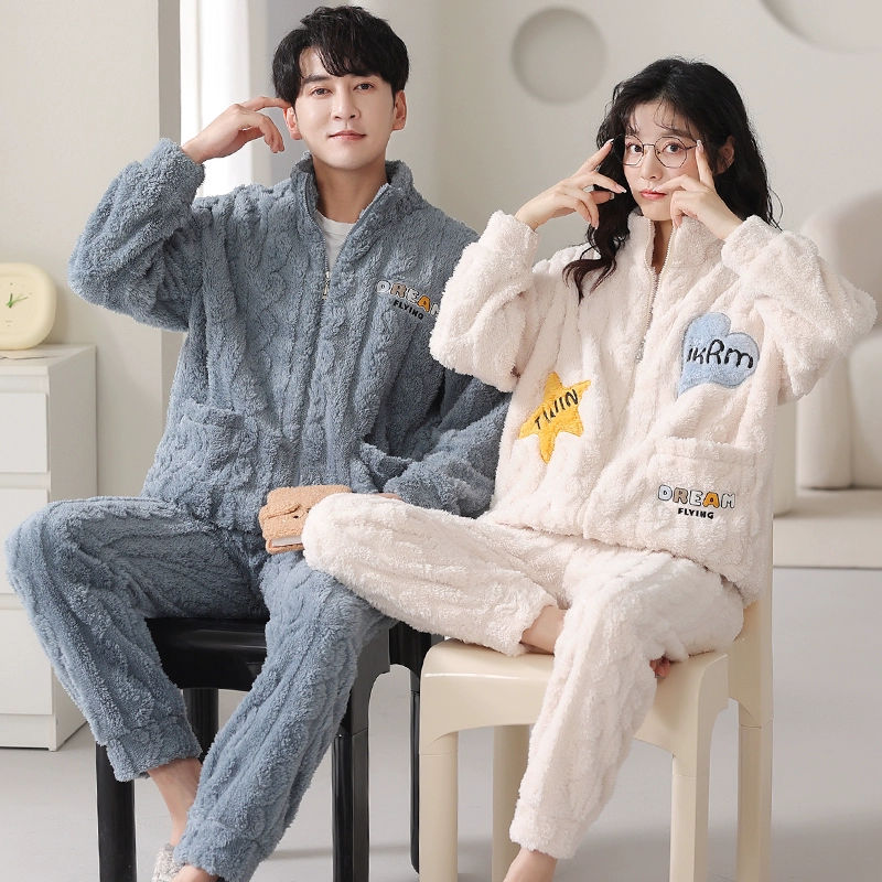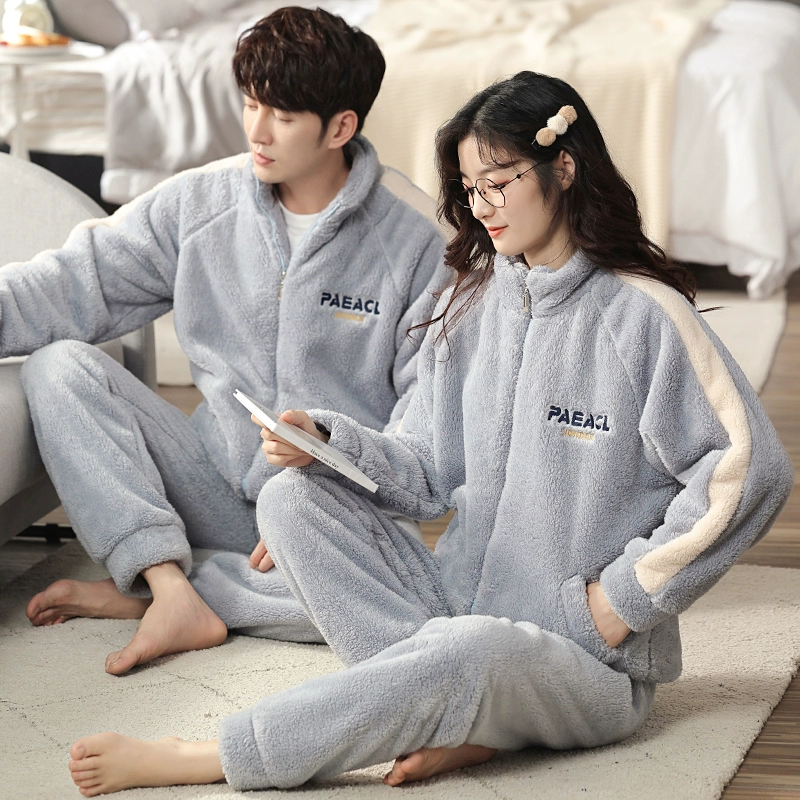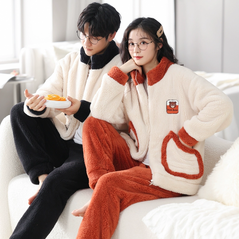 | nameOriginal | Couple's pajamas winter 2024 new coral velvet plus velvet thickened men's and women's warm vertical pattern home clothes autumn and winter styles |