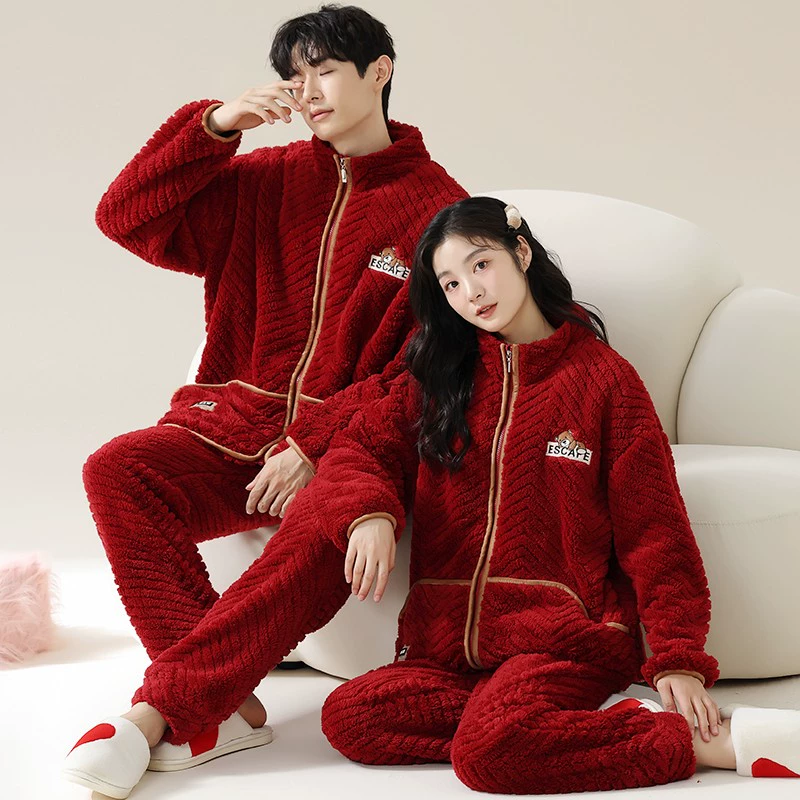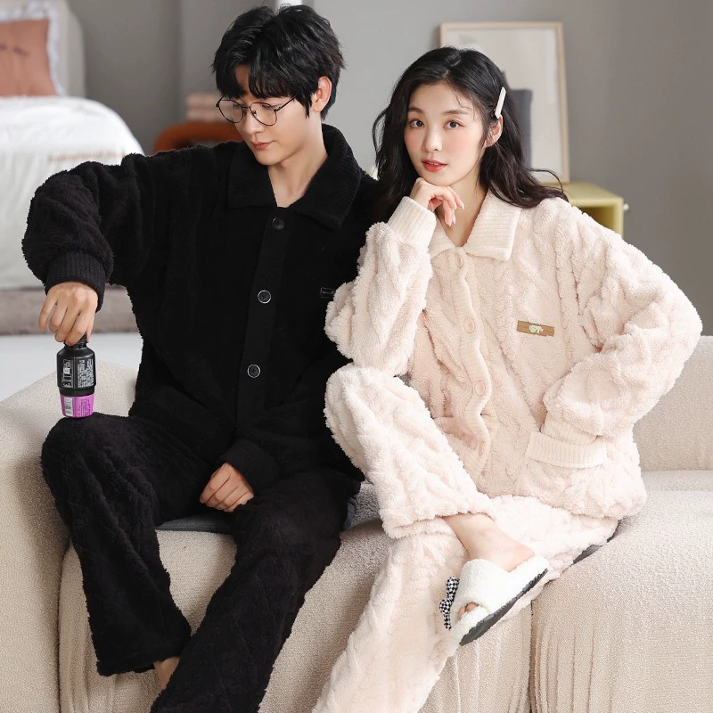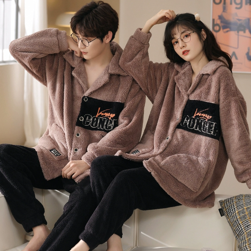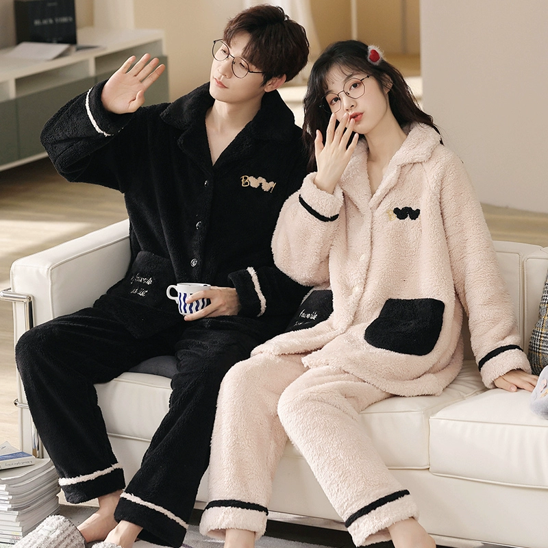 | nameOriginal | Couple's pajamas winter coral velvet plus velvet thickened men's and women's 2024 new winter black apricot home clothes autumn and winter styles |