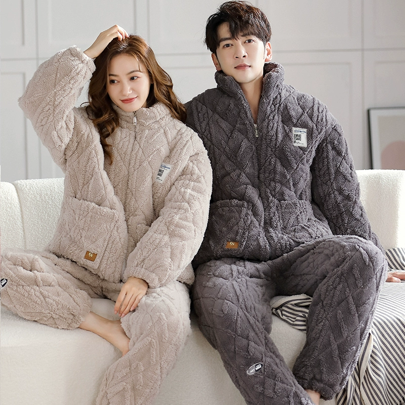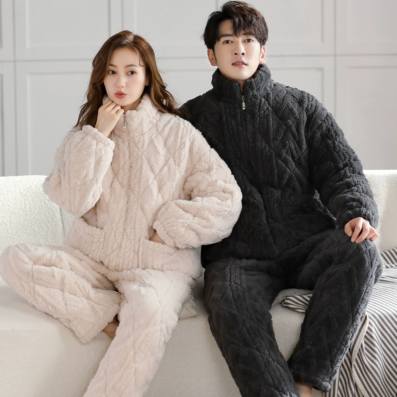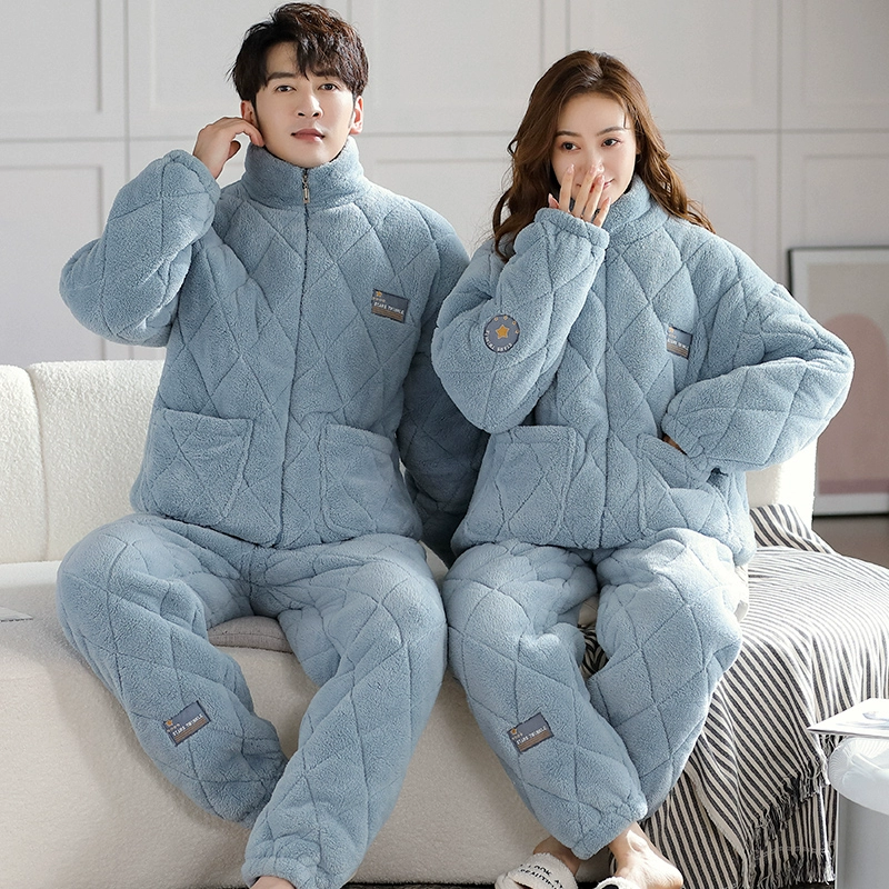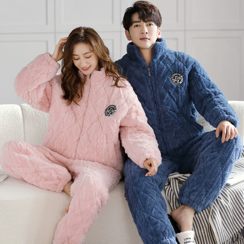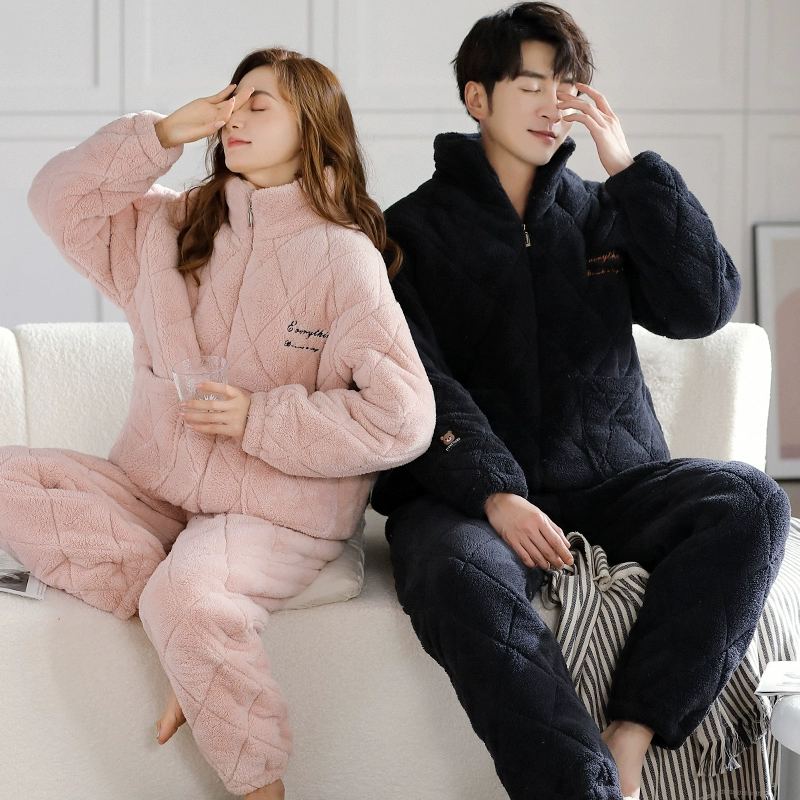 | nameOriginal | Couple's pajamas winter coral velvet three-layer quilted plus velvet thickened men's and women's letter bear home clothes autumn and winter styles |