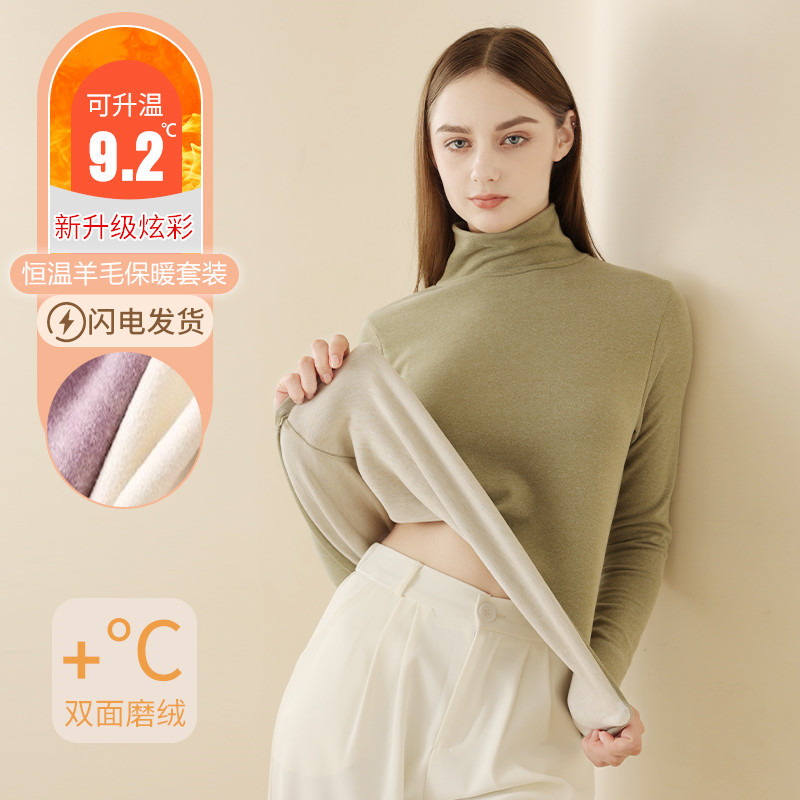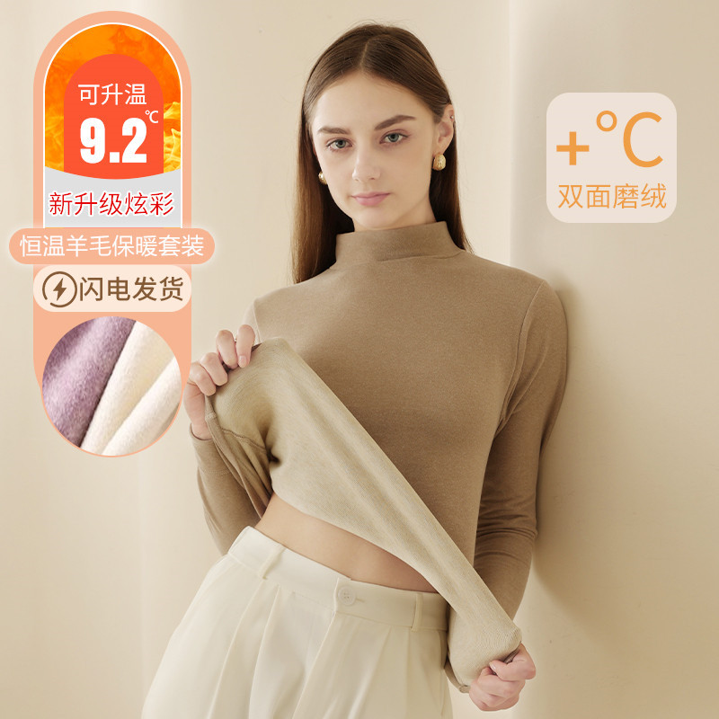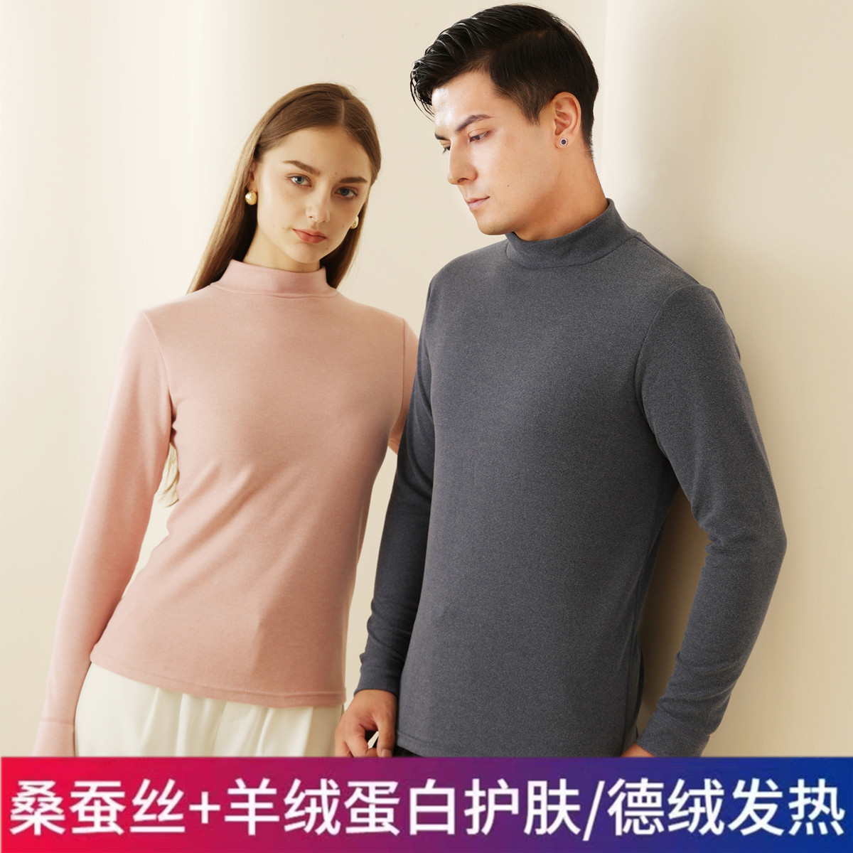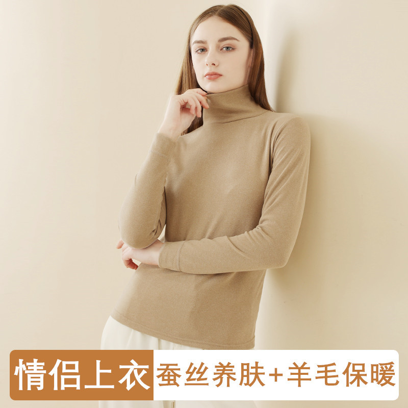 Couple’s silk mid-high collar half turtleneck bottoming shirt autumn and winter thermal underwear outer wear warm clothes fleece-lined thickened wholesale