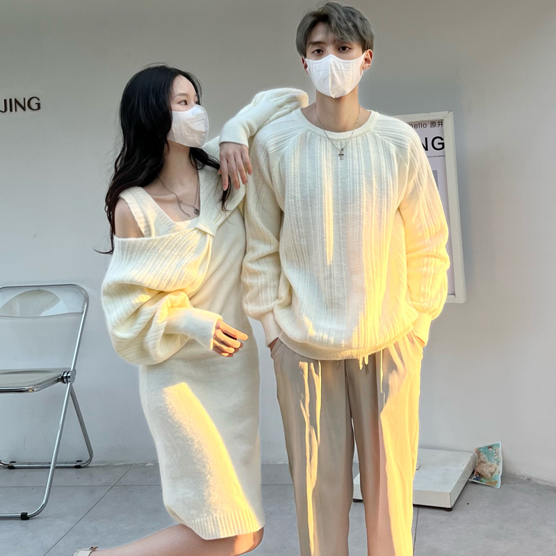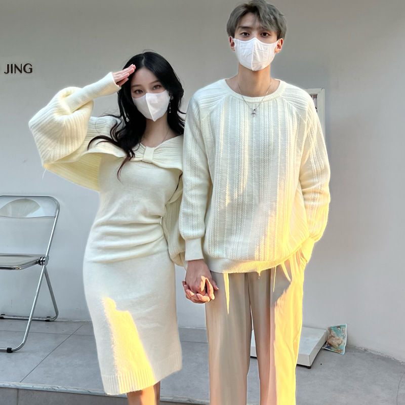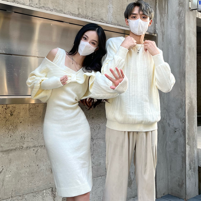 | nameOriginal | Couple's Sweater 2022 Autumn and Winter Women's Shawl Bow Pure Sling Dress Round Neck Men's Sweater |