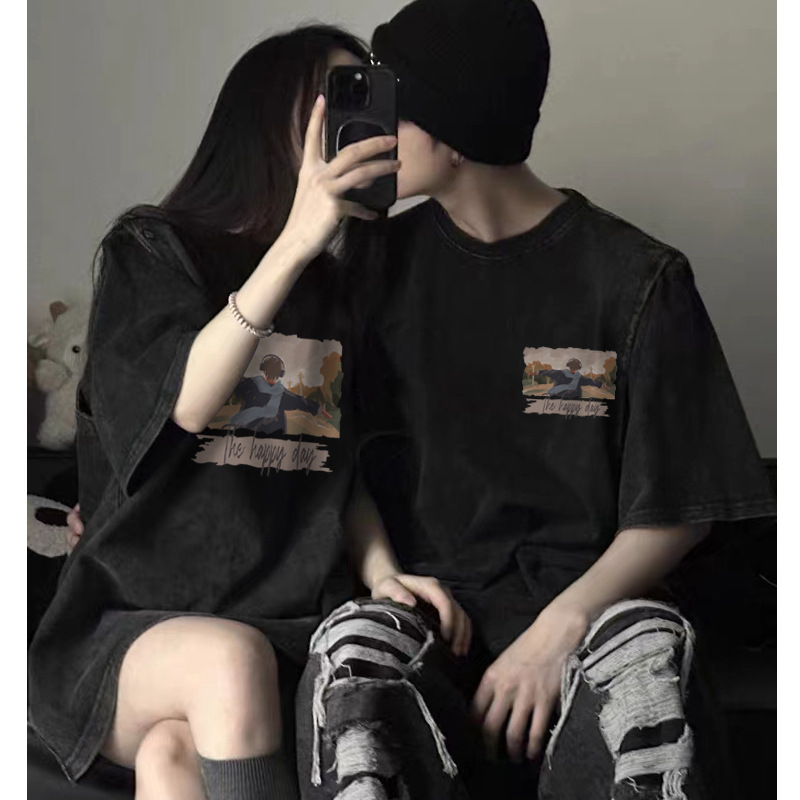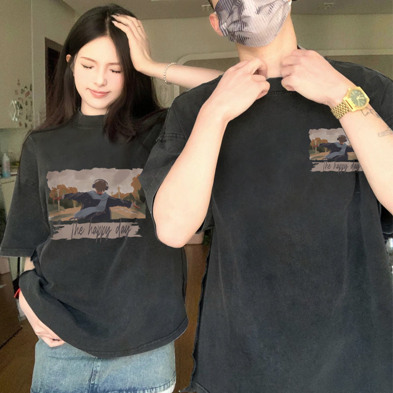 | nameOriginal | Couple's wear heavy pure cotton washed distressed short-sleeved T-shirt summer women's 2023 new high street fashion niche top |
