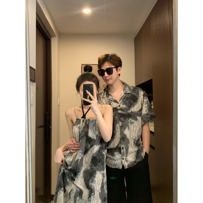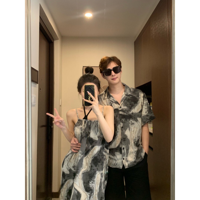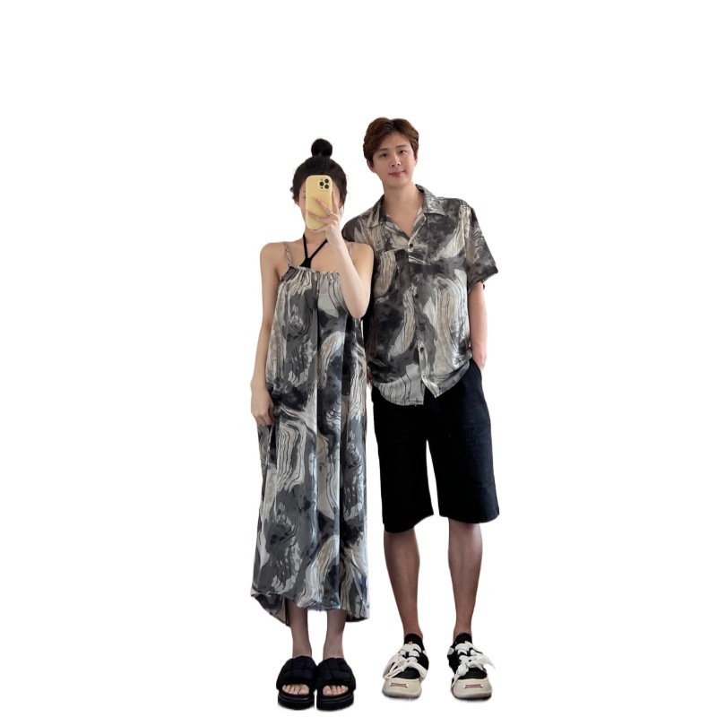 | nameOriginal | Couple's wear summer 2024 new holiday seaside beach shirt fake two-piece sling dress one dress fashion |