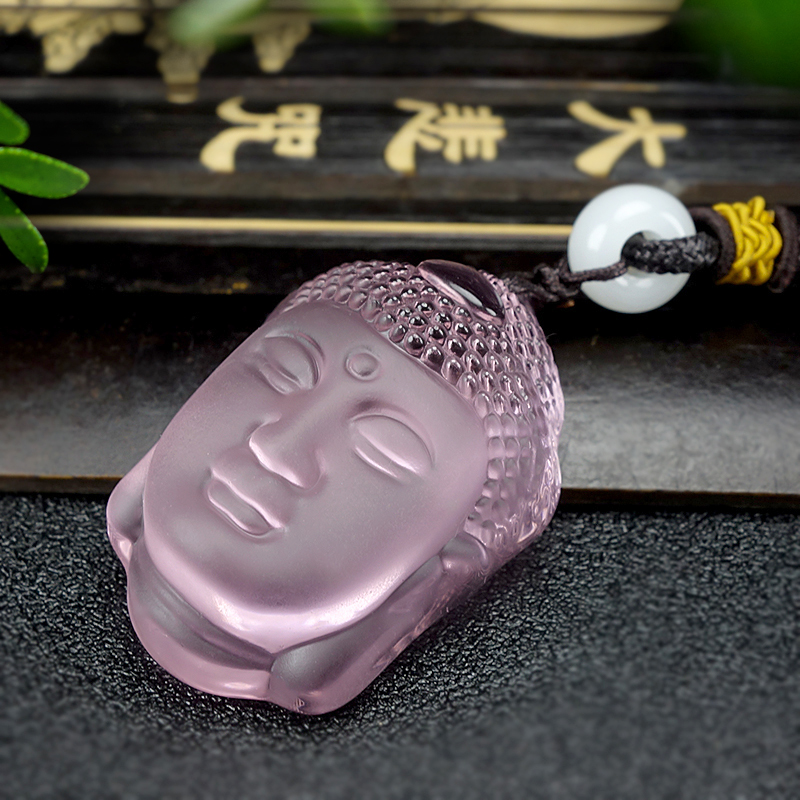 Court Lady Peach Blossom Ping An Natural Buddha Head Pendant Frosted Glass Tathagata Buddha Pendant Men's and Women's Jade Necklace