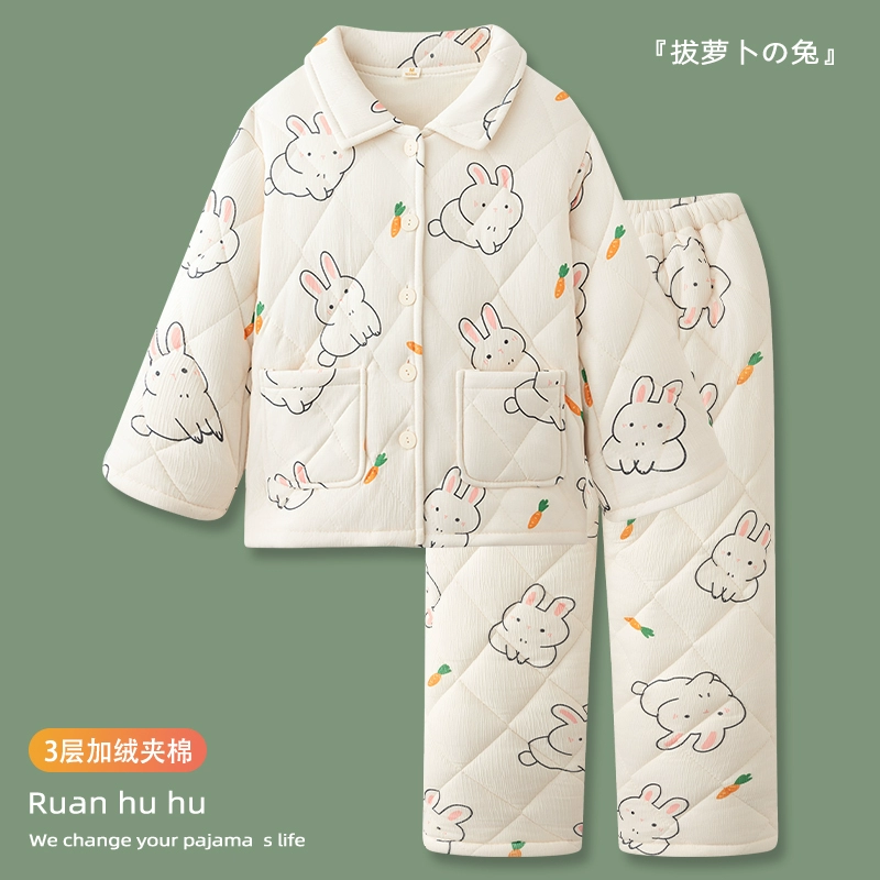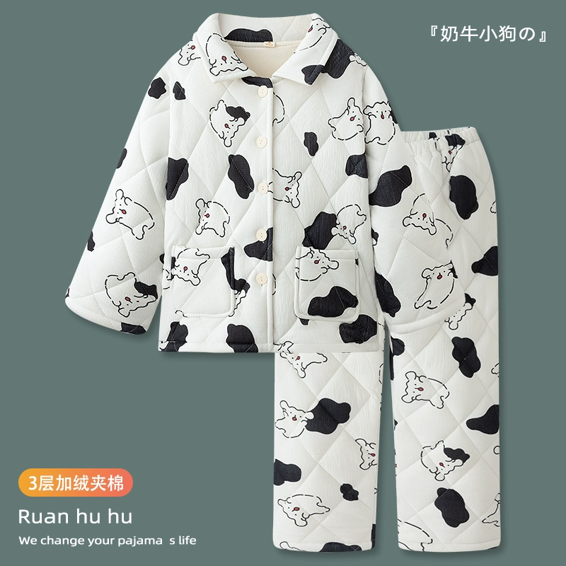 "Cow" three-layer quilted pajamas for women, winter 2024 new thickened and velvet home clothes, warm and can be worn outside