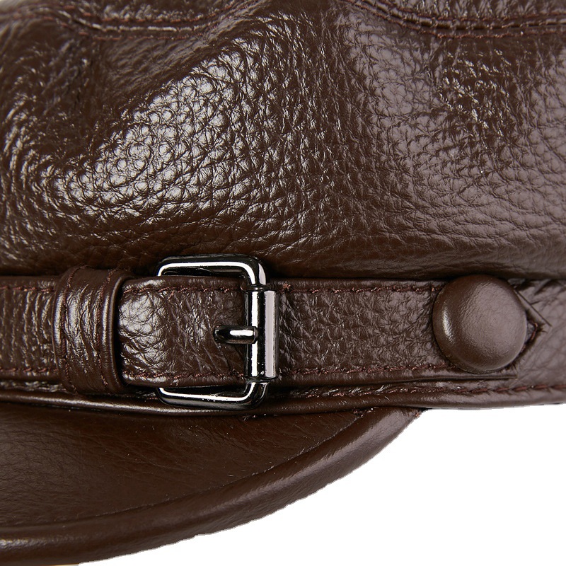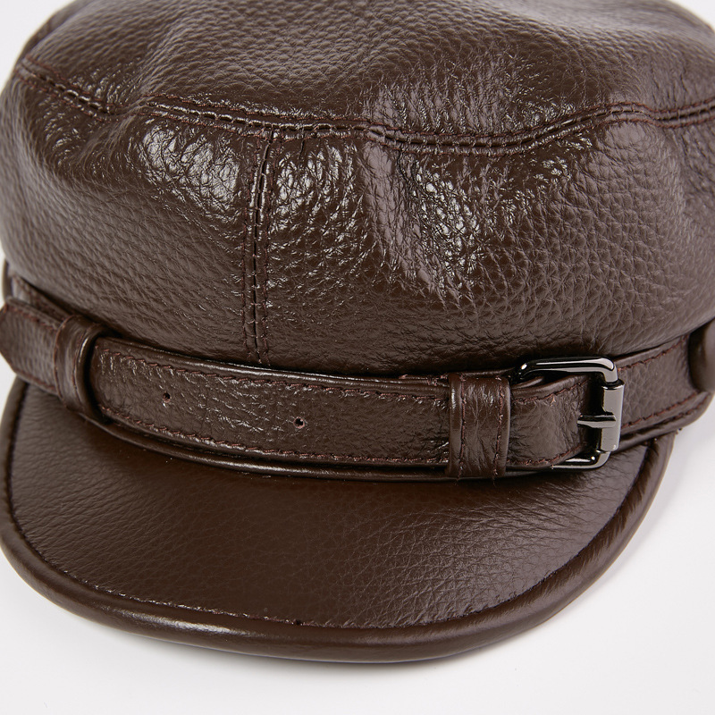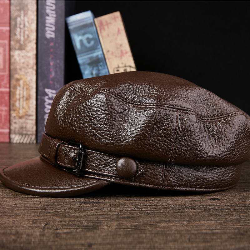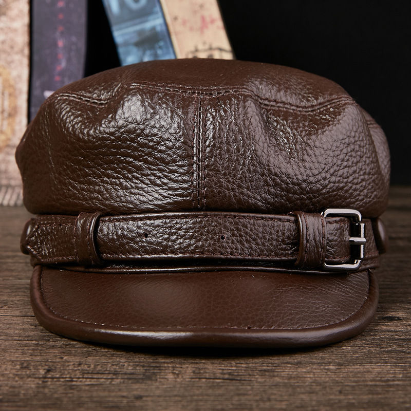 Cowhide Genuine Leather Hat Korean Style Fashionable Middle-aged Men’s Winter Winter Student Youth Duck Tongue Navy Flat Top Military Hat