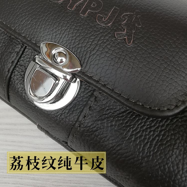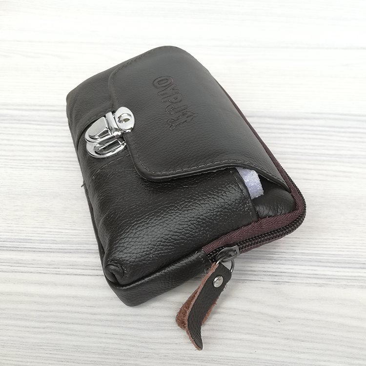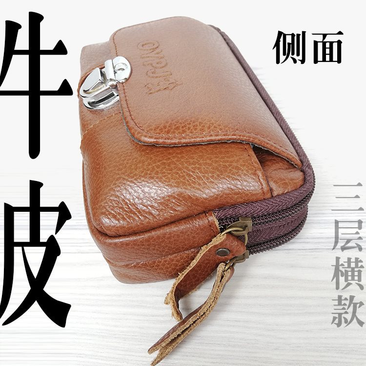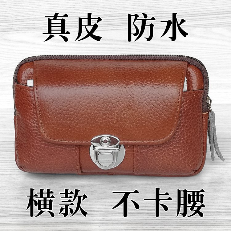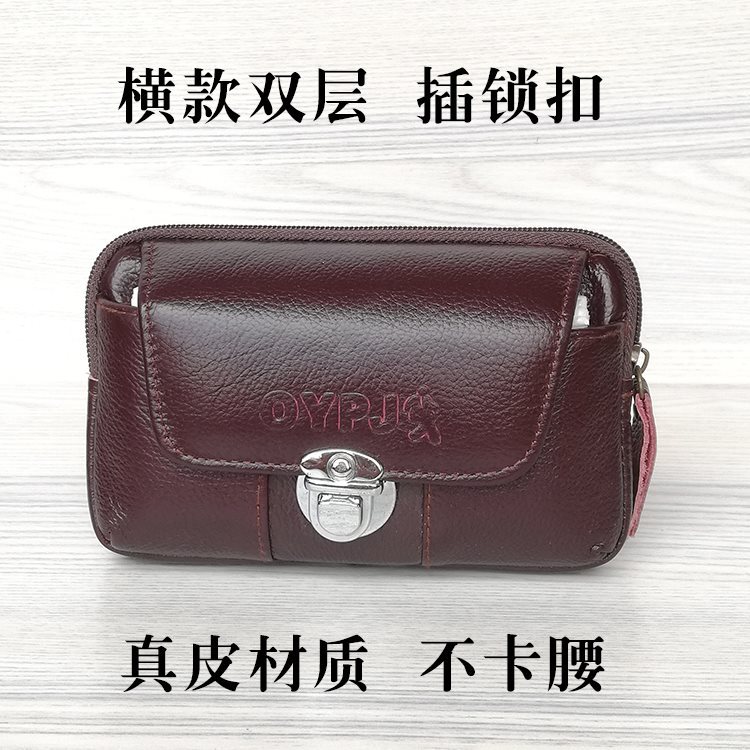 Cowhide Horizontal Waterproof Mobile Phone Bag Wear Belt Waist Bag Lock Buckle Suction Buckle Two-layer Three-layer Single and Double Zippers for Middle-aged Men