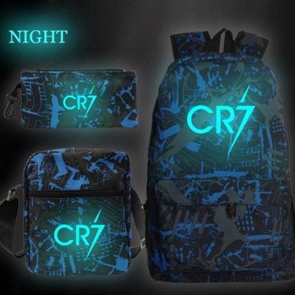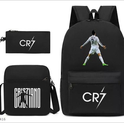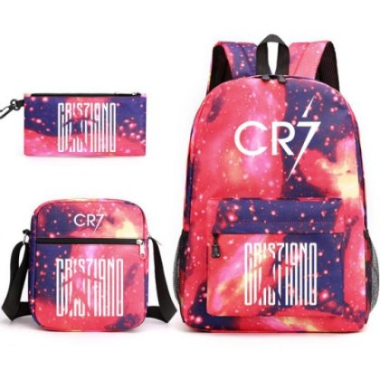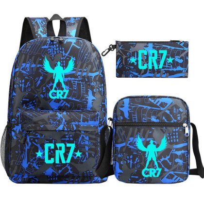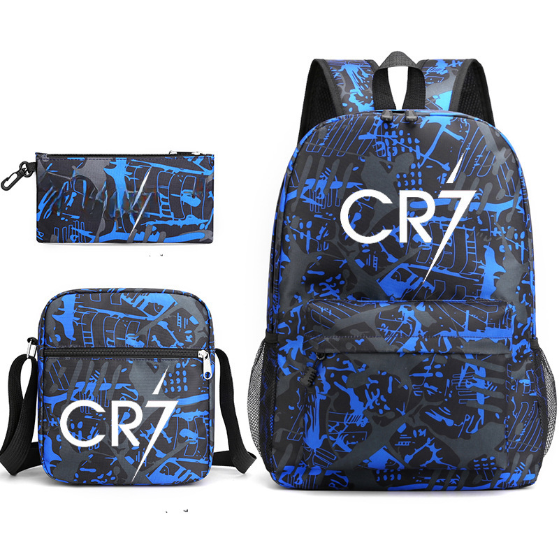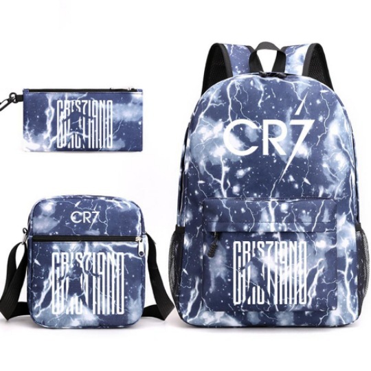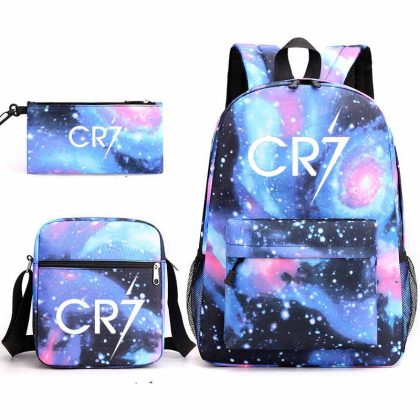 CR7C Luo Backpack Sports Peripheral Printed Backpack Children's Schoolbag Student Shoulder Bag Pencil Bag Three-Piece Set