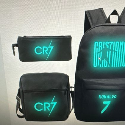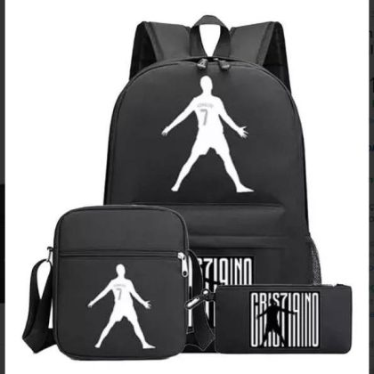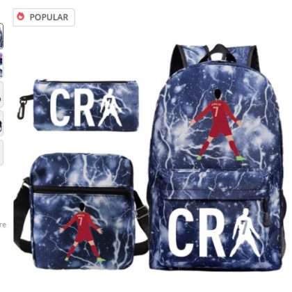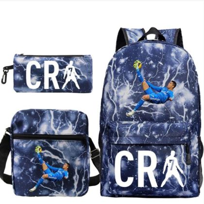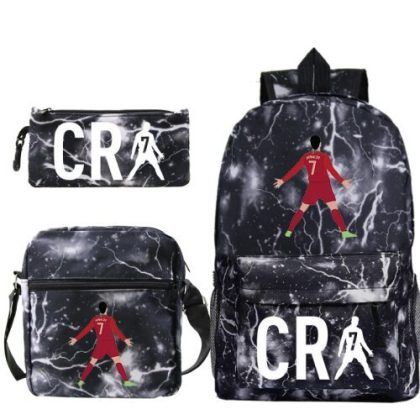 CR7C Luo Backpack Sports Peripheral Printed Backpack Children’s Schoolbag Student Shoulder Bag Pencil Bag Three-Piece Set