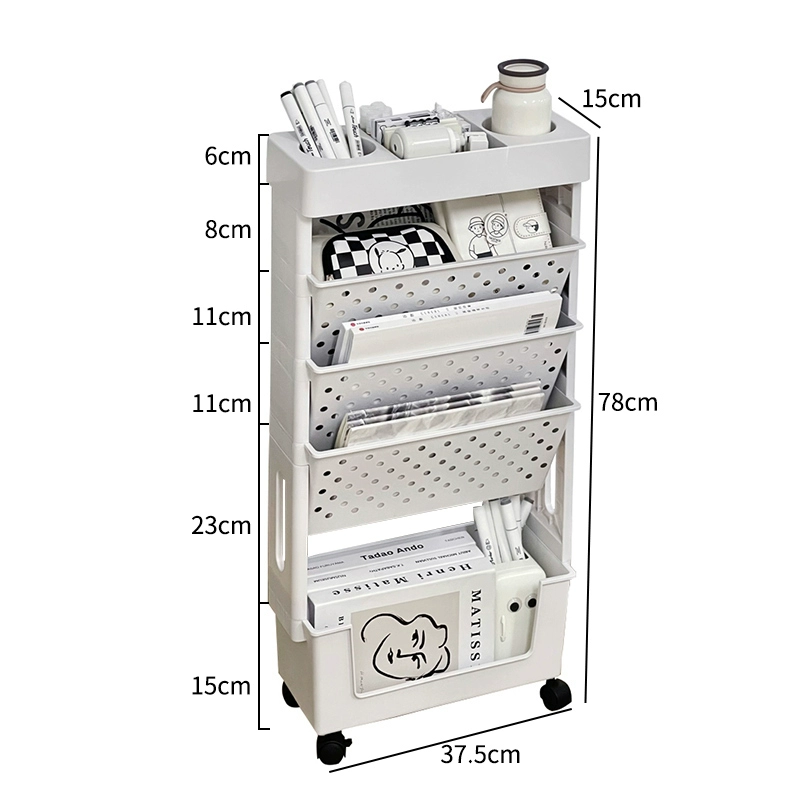 | nameOriginal | Cracked bookshelf, desk-side floor-standing storage rack, desk-side trolley, book magazine stationery storage, removable |