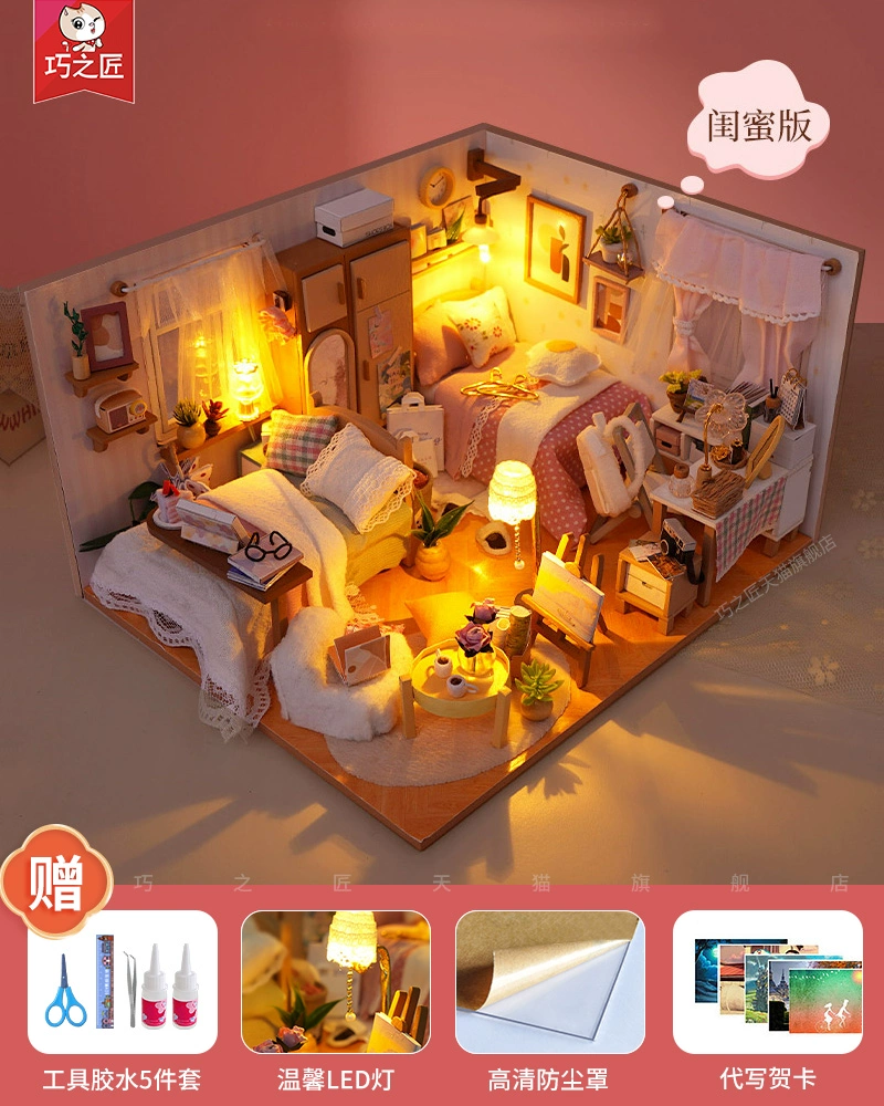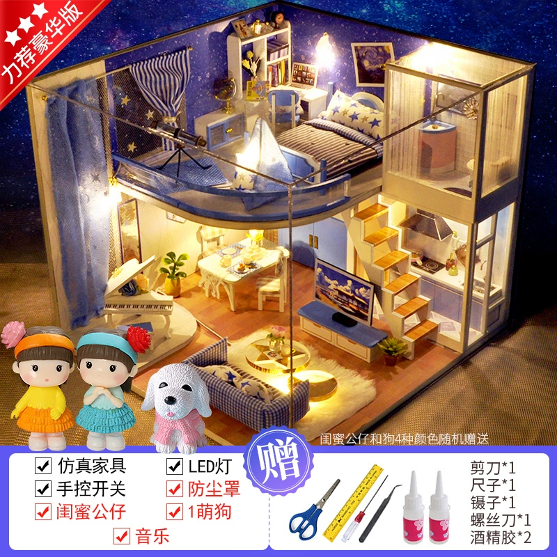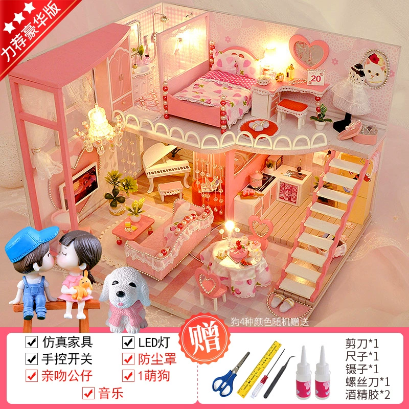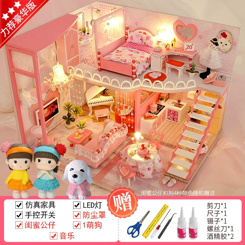 | nameOriginal | Craftsman diy cabin loft handmade small house model villa building girl princess dollhouse |