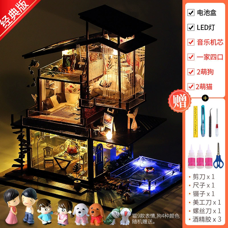 | nameOriginal | Craftsman diy handmade cabin house small villa real house assembled building model toys birthday gift for girls |