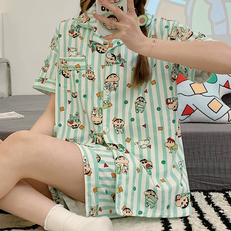 Crayon Shin-chan striped cotton cardigan for women student cartoon