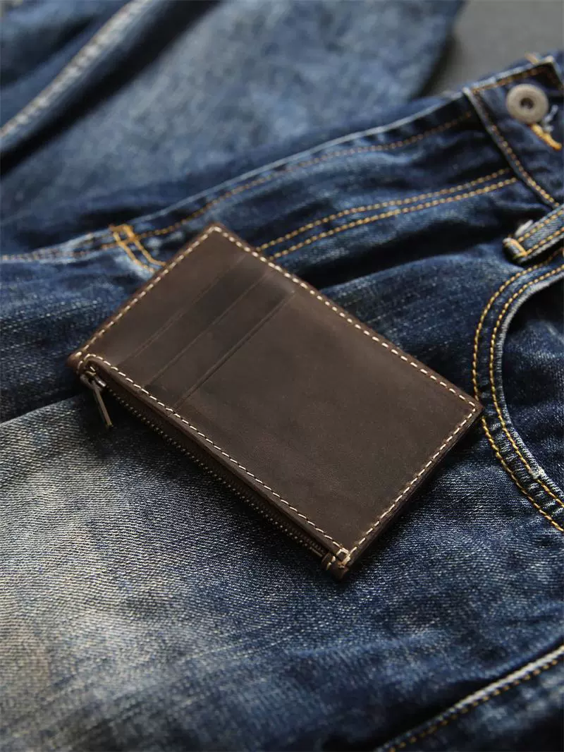 Crazy Horse first-layer cowhide men's mini coin purse ultra-thin leather zipper coin bag short small wallet card holder
