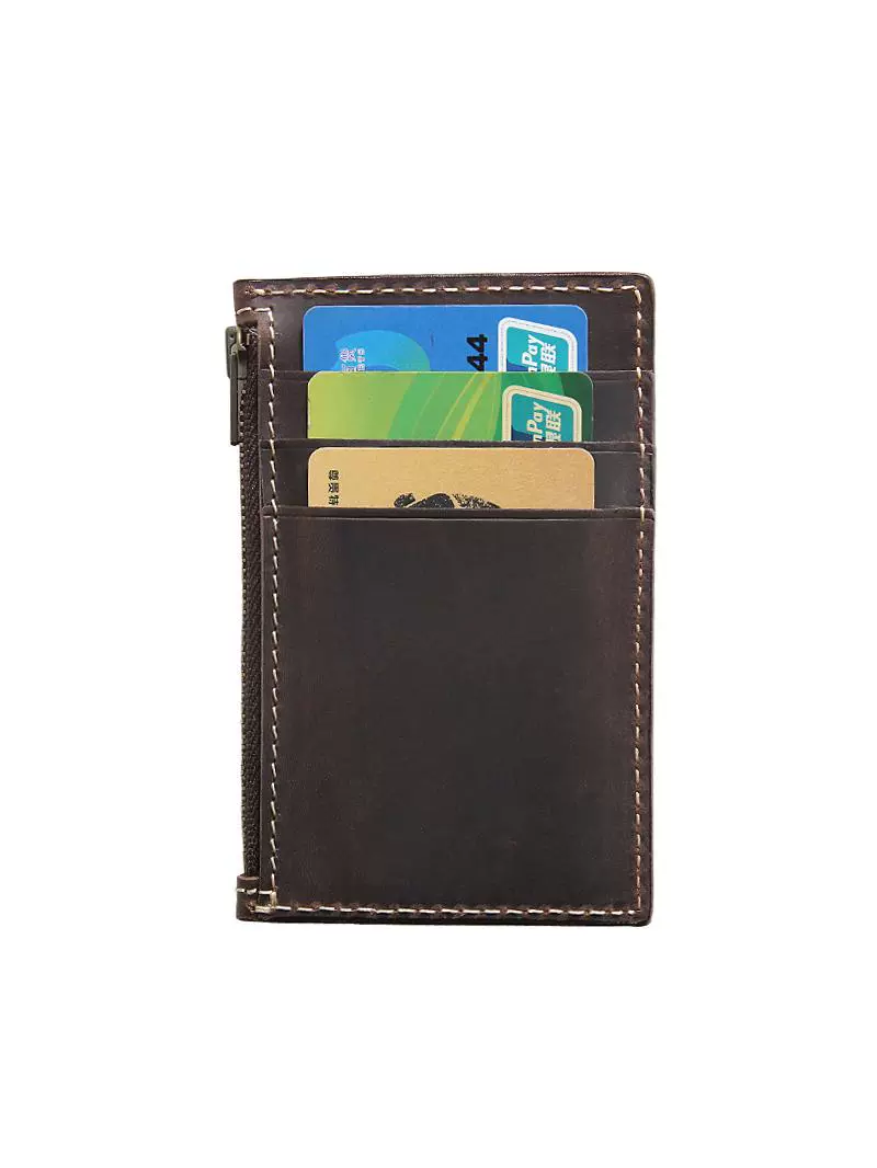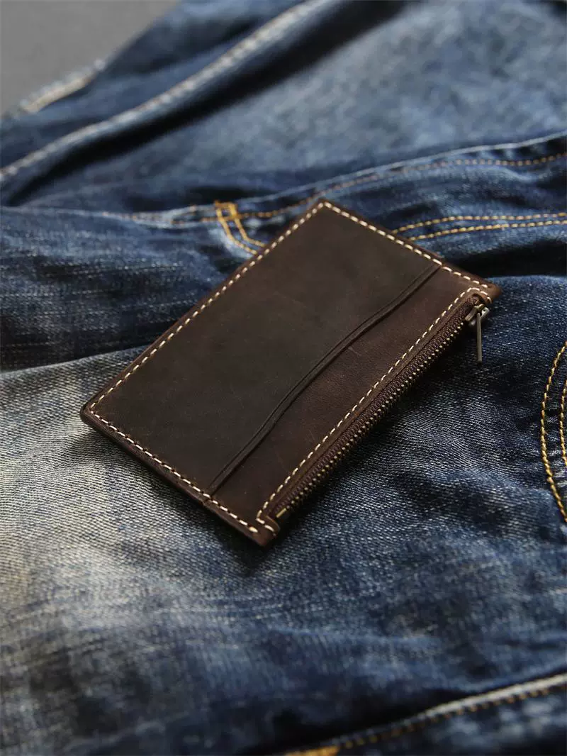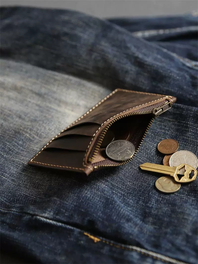 Crazy Horse Head Cruise Men’s Mini Pass Wallet ultra -thin leather zipper coin bag short small wallet card bag