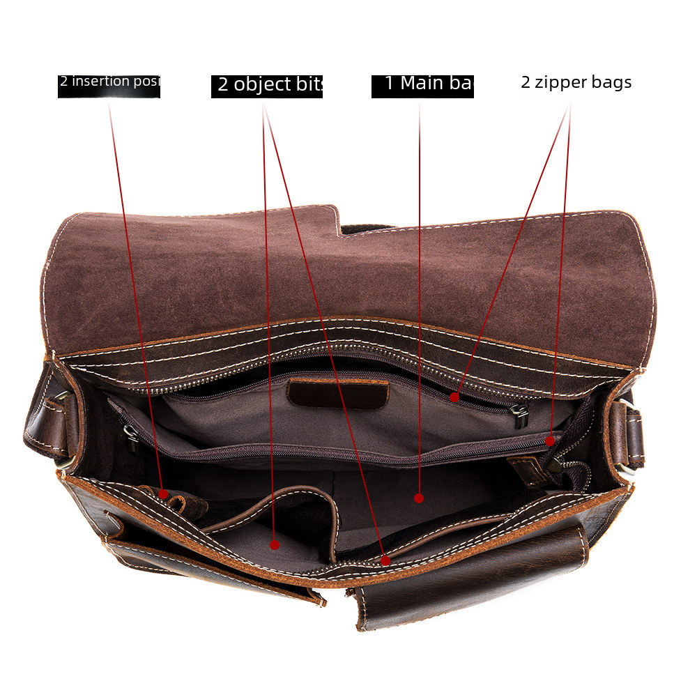 | nameOriginal | Crazy Horse Leather Men's Bag Men's Genuine Leather Shoulder Bag Men's Retro First Layer Cowhide Leather Crossbody Bag Large Capacity Briefcase |