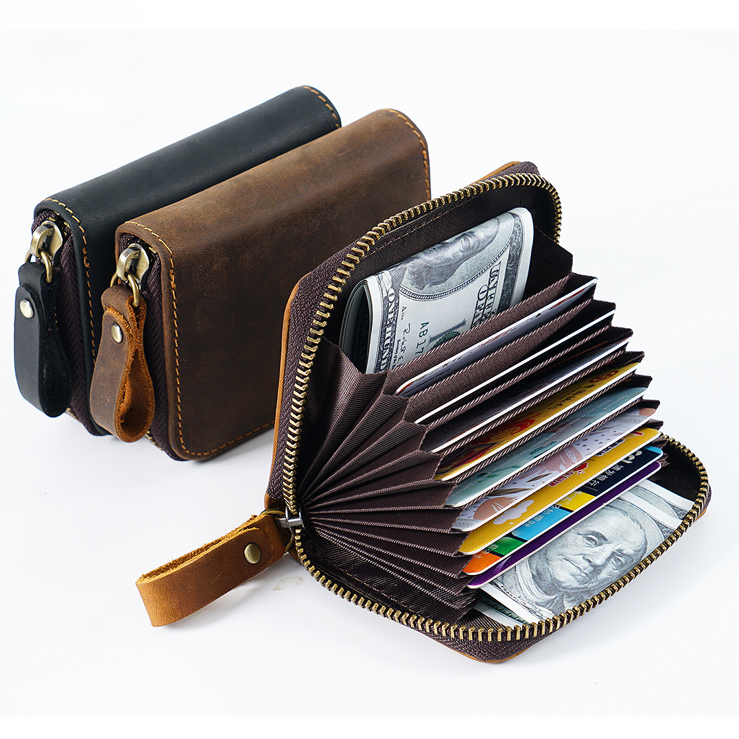Crazy Horse Leather rfid Anti-Magnetic Card Holder Large Capacity Card Holder Organ Bag Card Holder Multi Card Holder Genuine Leather Vintage Coin Purse