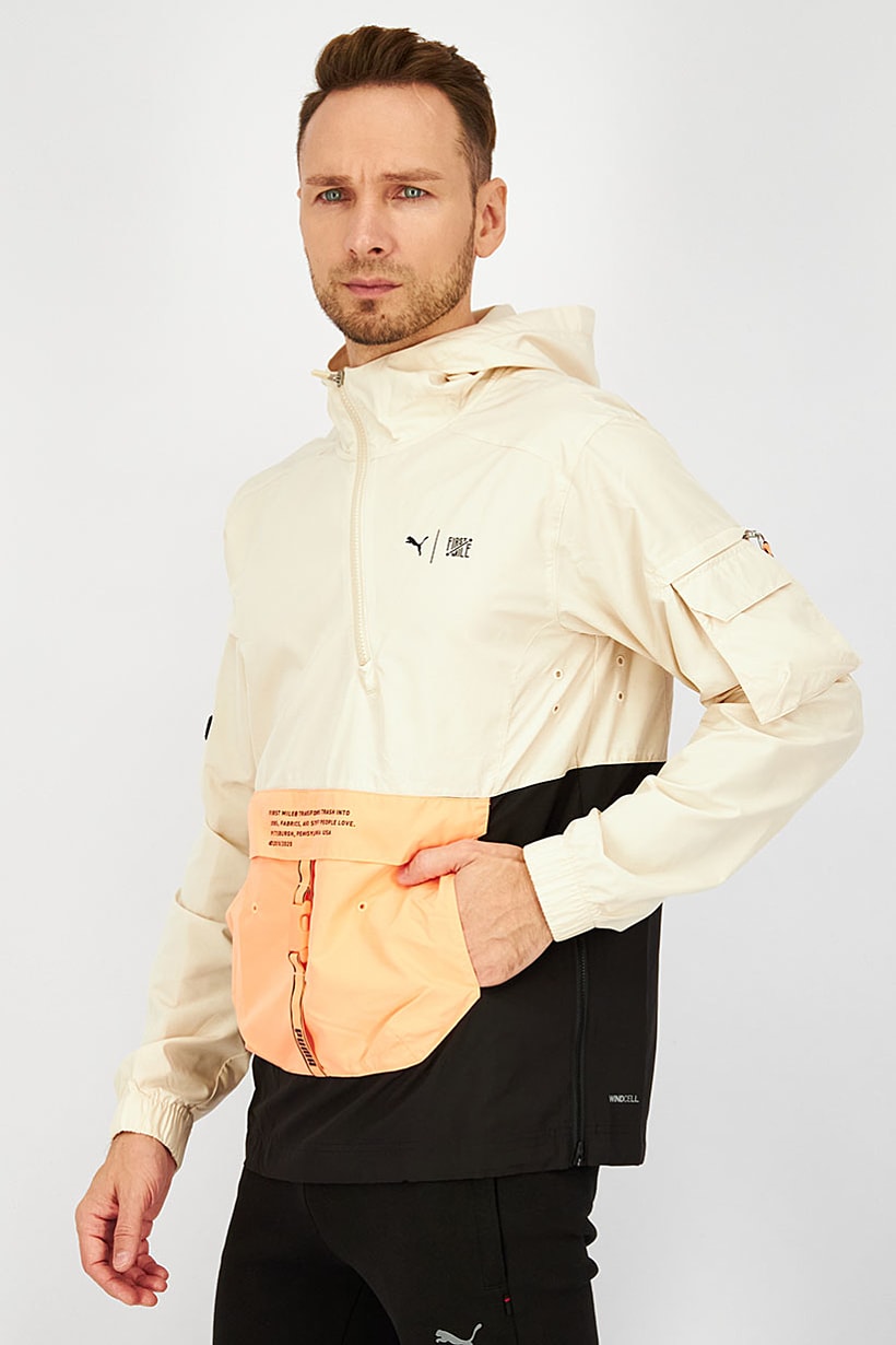 This sportswear jacket features a straight bottom hem and a sportswear fit, making it perfect for training. It is made of 100% polyester fabric that is light in thickness and easy to care for with machine washing. The brand logo is printed on the cream-colored jacket, which is available in international sizes. Ideal for various sports activities, this jacket is a great addition to your sportswear collection.
