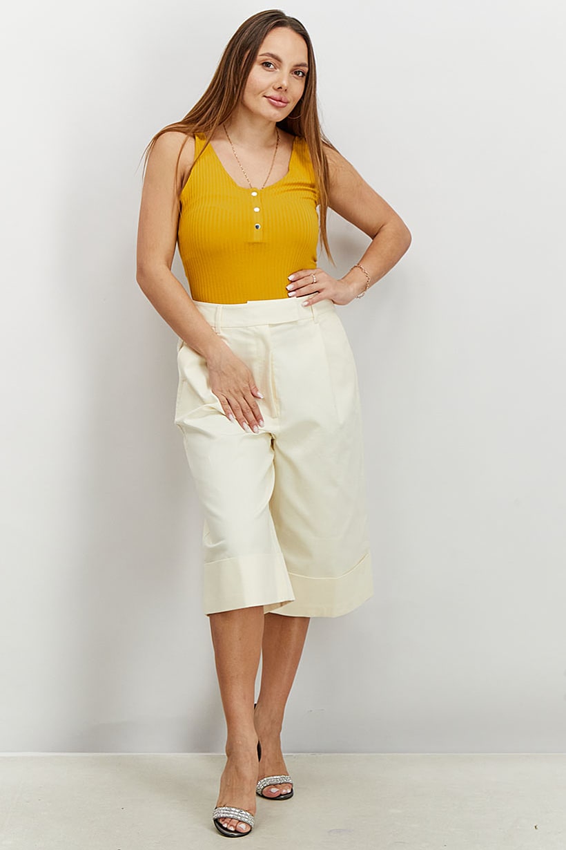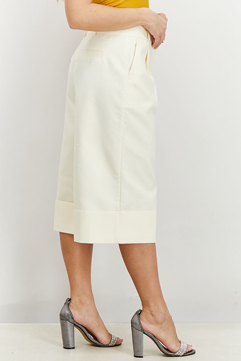 Cream Capri Pants with Pleated Regular Fit for Women.