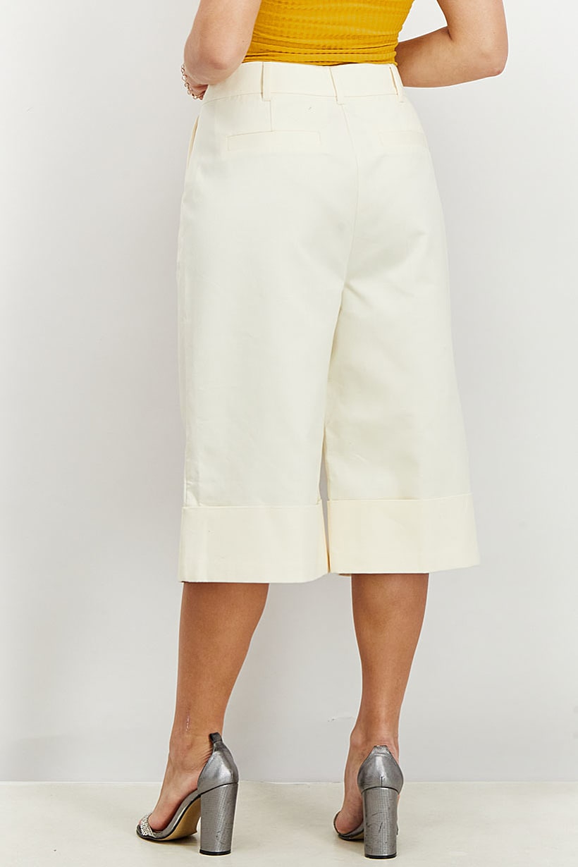 Women Regular Leg Pleated Capri Pants, Cream