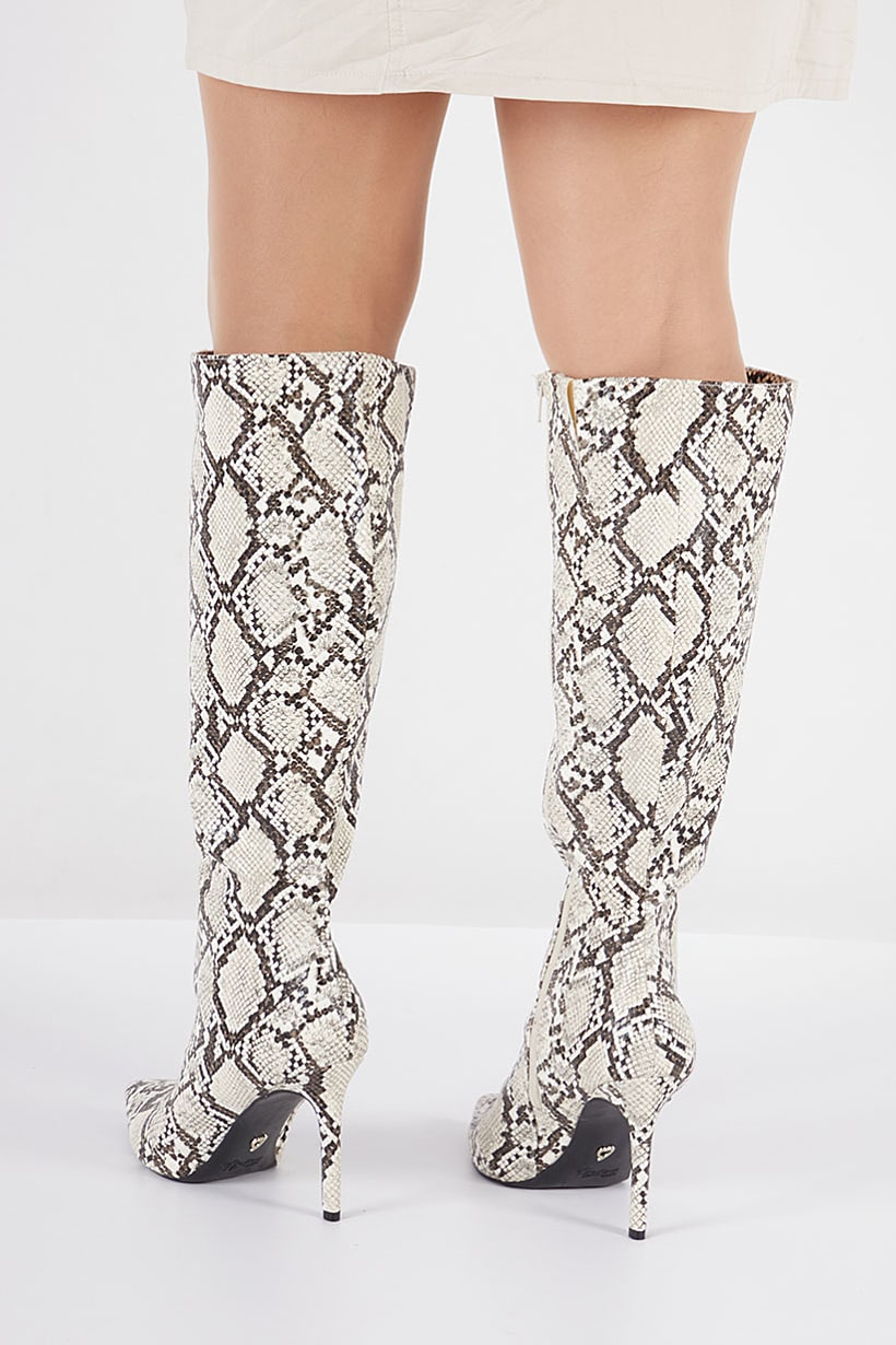 | nameOriginal | Women Rajelp Medium Snake Skin Knee Length Boots, Cream Combo |