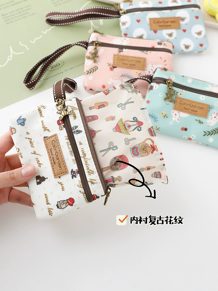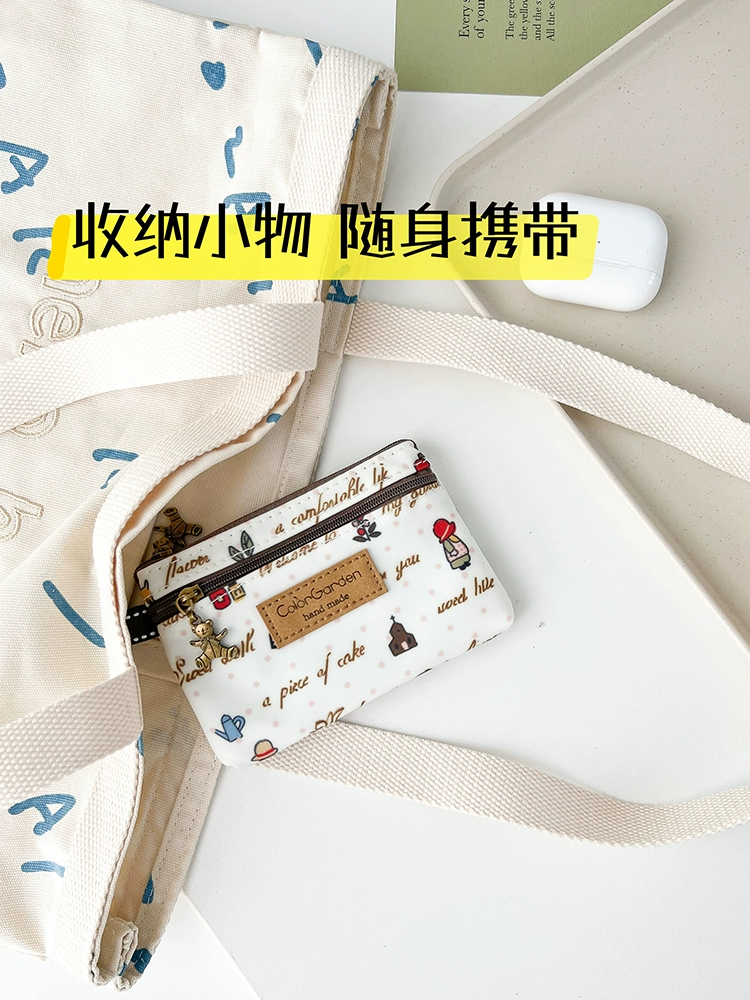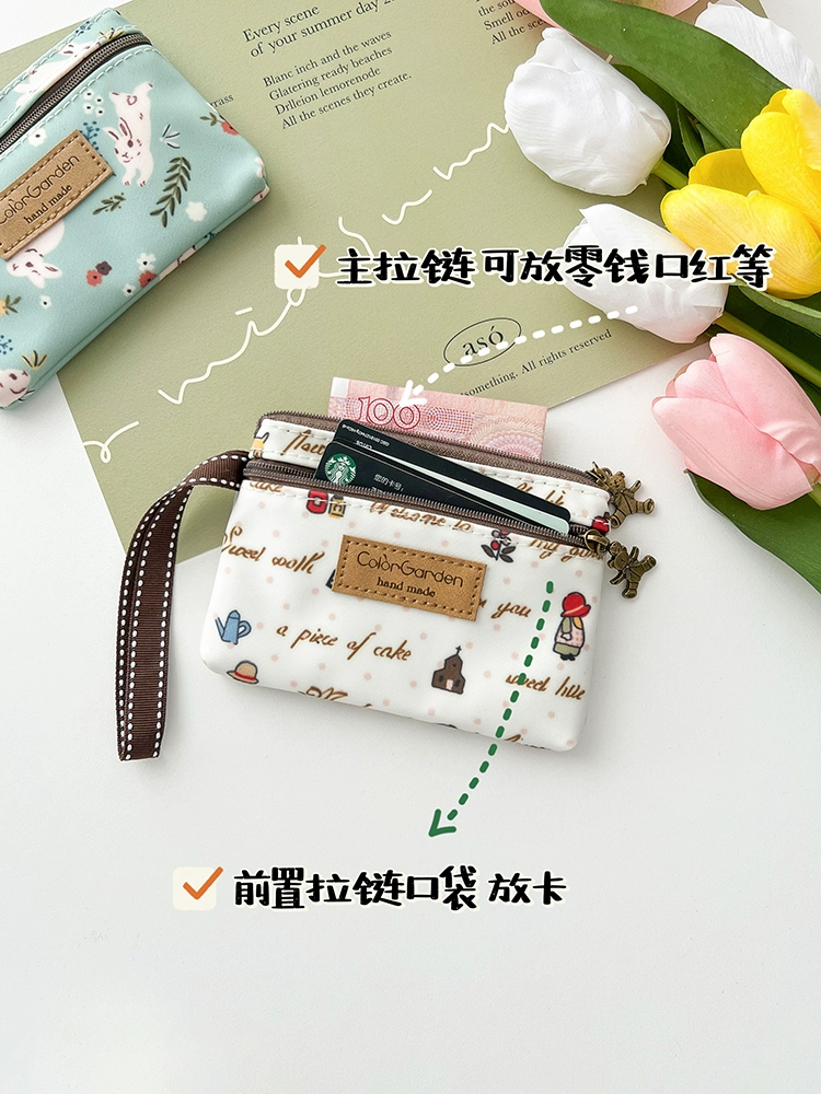 | nameOriginal | Cream English double zipper coin purse female mini short wallet cute small bag horizontal card holder driver's license bag |