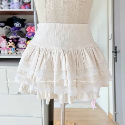 | nameOriginal | Cream girly lace patchwork short skirt |