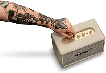 The Marshall Acton III Wireless Bluetooth Speaker in Cream is the perfect addition to any music lover’s collection. With its sleek and stylish design, this speaker not only looks great but also delivers high-quality sound. The Bluetooth connectivity allows you to easily connect your phone or other devices and stream your favorite tunes wirelessly. The Acton III also features a powerful amplifier and custom-tuned drivers, providing a rich and immersive audio experience. The cream color adds a touch of elegance to any room, making it a great choice for both home and office use. With its compact size, the Acton III is easy to move around and can be placed on a shelf, desk, or table. Whether you’re hosting a party or just relaxing at home, the Marshall Acton III Wireless Bluetooth Speaker is the perfect choice for all your audio needs.