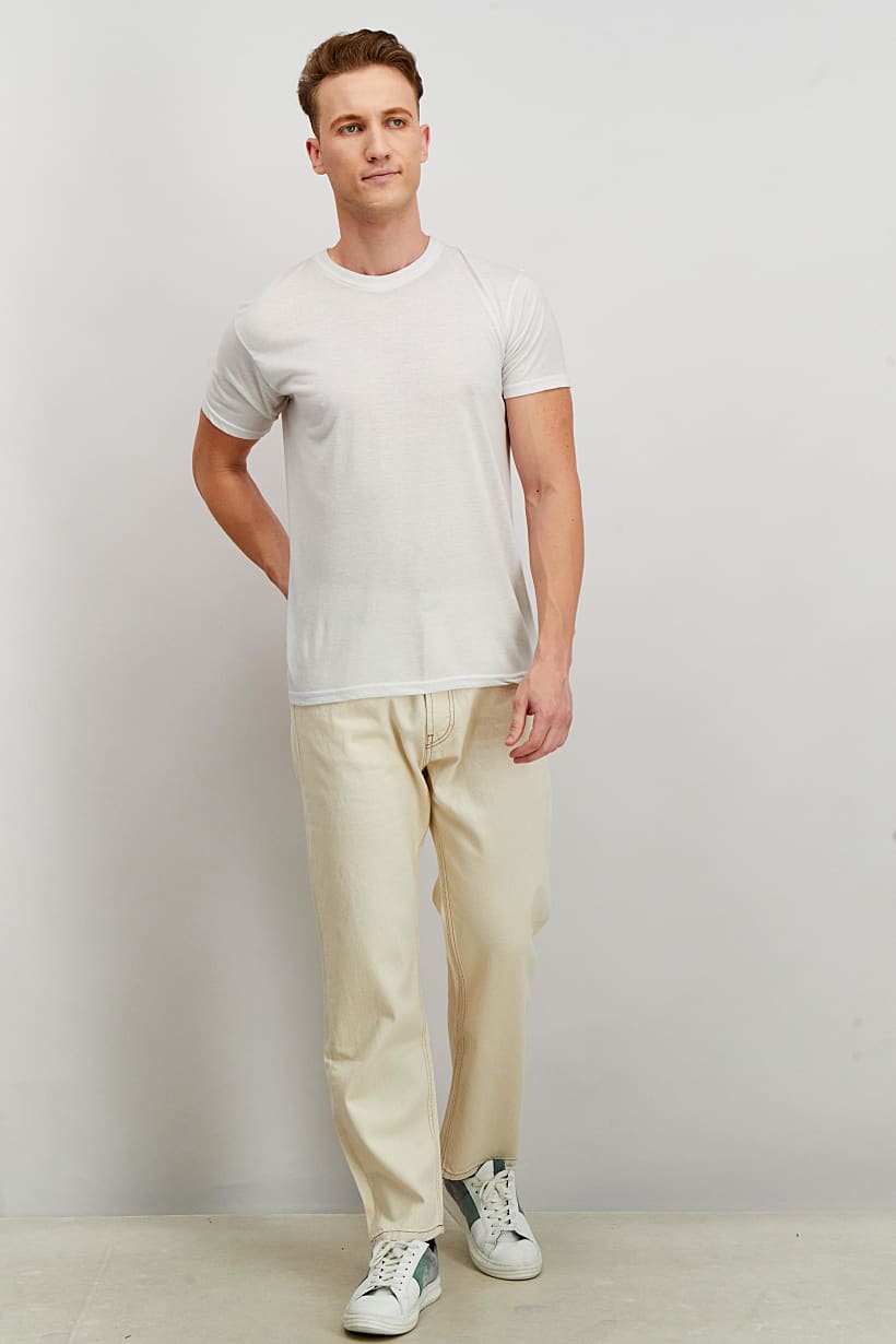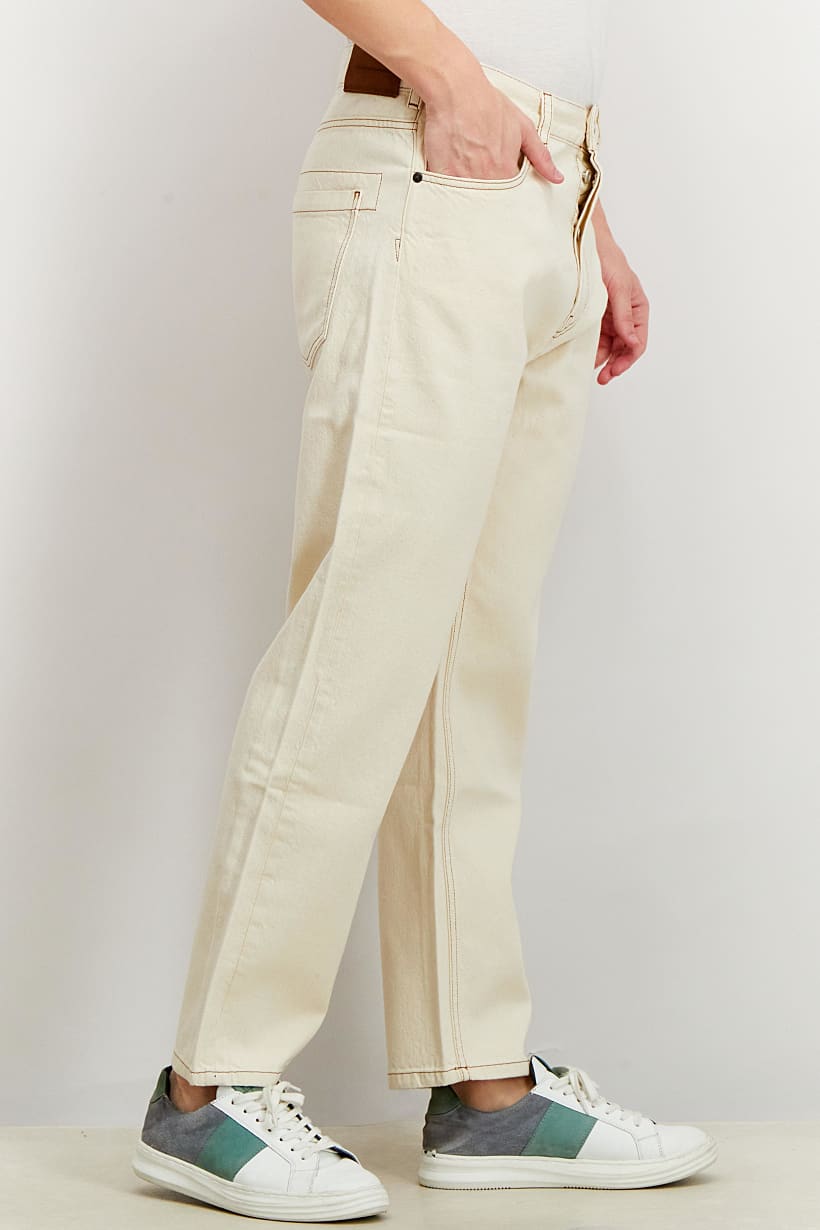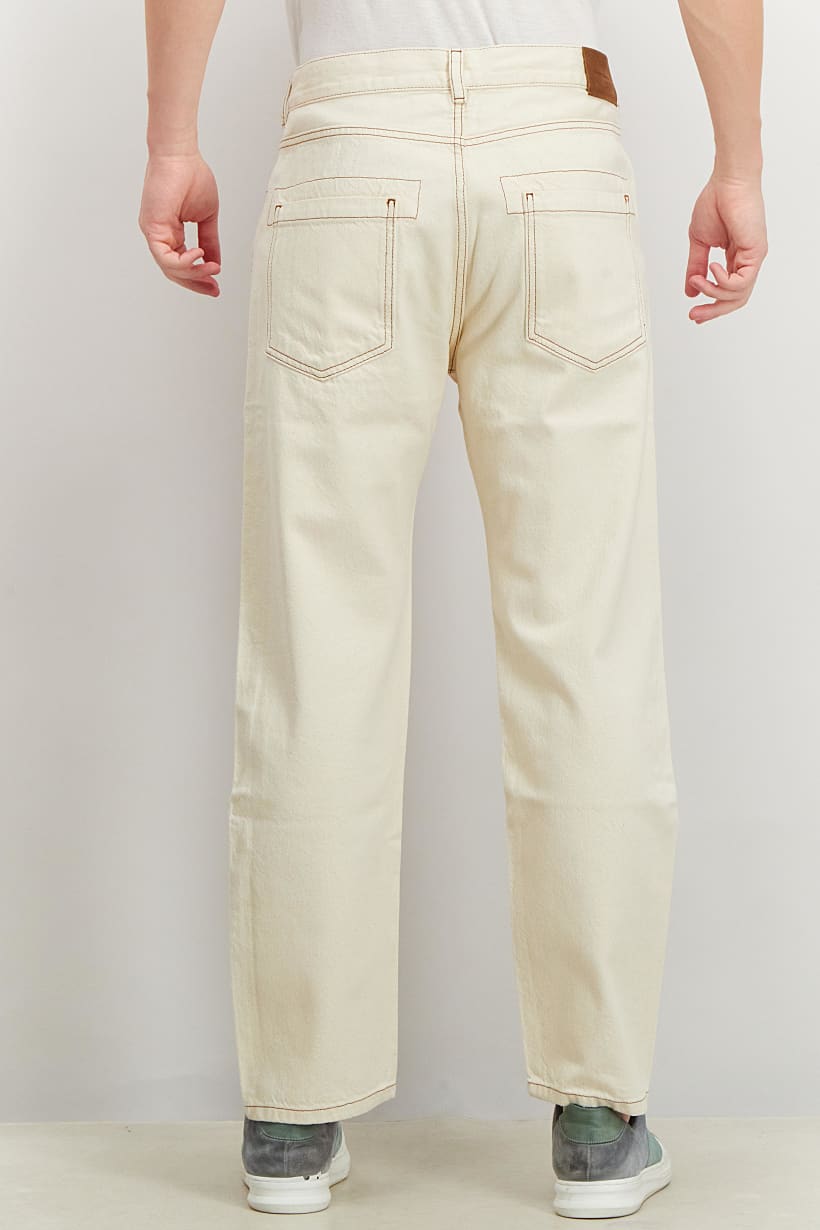 Men Clothing, Jeans, men loose fit washed non stretchable denim jeans cream