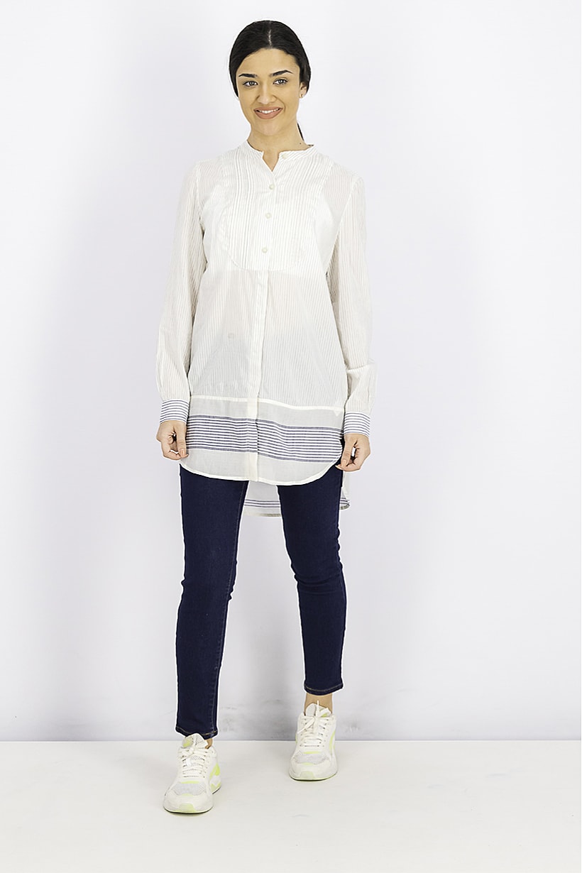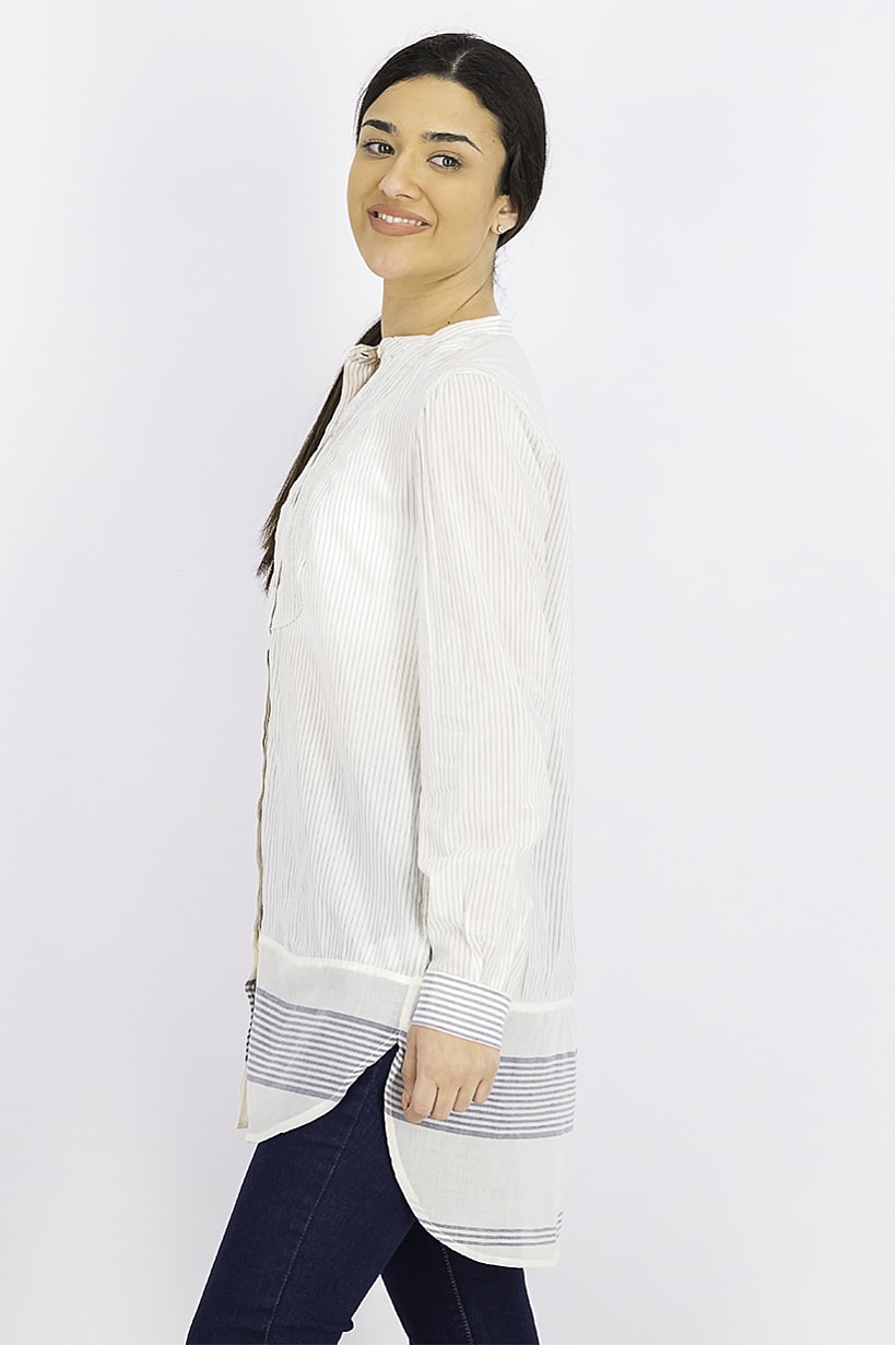 | descriptionOriginal | Care : Machine washable, Fit : Regular fit, Ideal For : Women, Size shown : International, Top Style : Tunic, Types of Hem : Straight hem, Types of Neckline & Collar : Crew neckline, Types of Sleeve : Longsleeve, Disclaimer : Product color may slightly vary due to photographic lighting sources or your monitor settings., Fabrics : 55% Cotton, 45% Viscose, Occasion : Casual, Pattern & Print : Stripe, Types of Closures : Button, Color Family : Cream, |