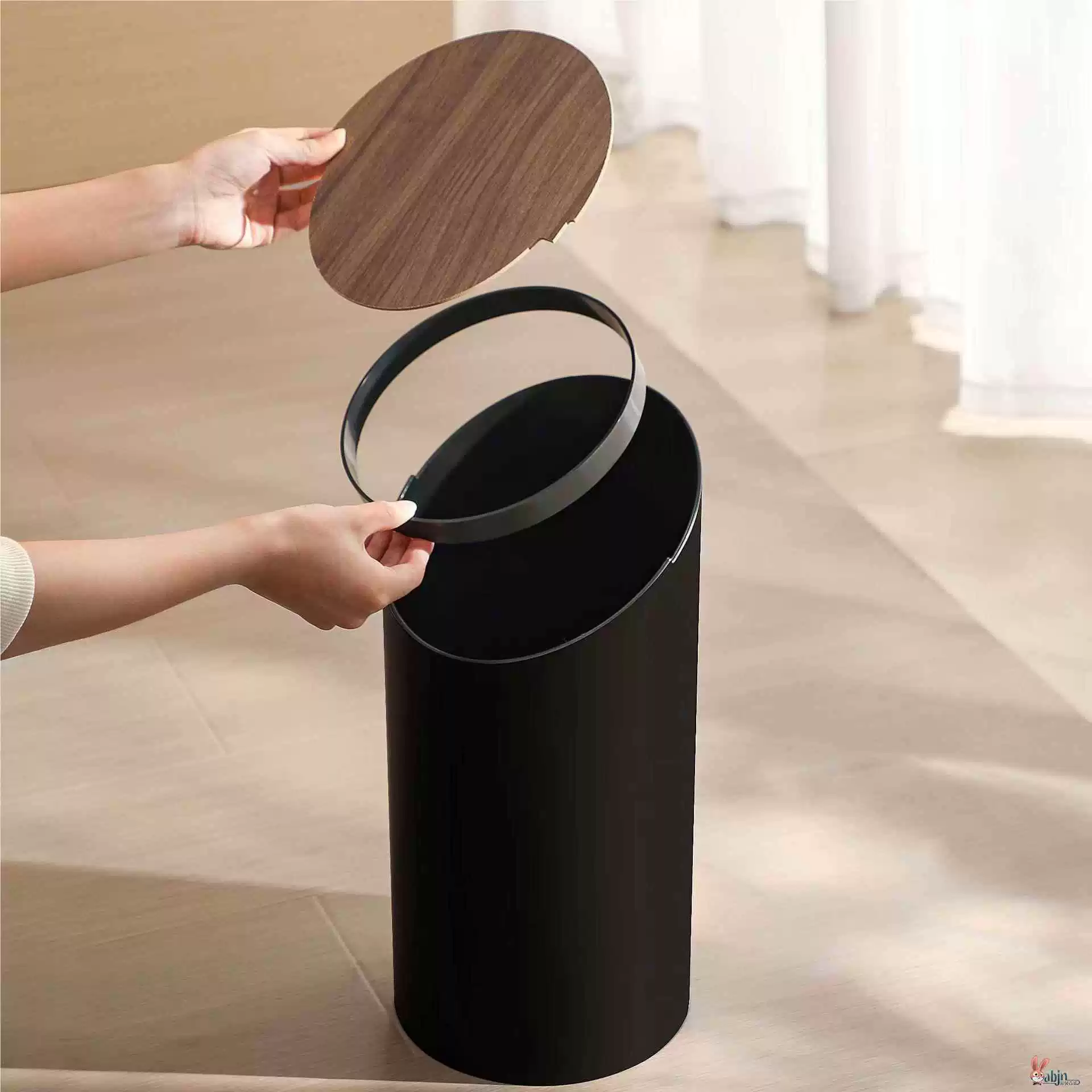 | nameOriginal | Cream-style bathroom trash can with automatic rebound flip-top storage bucket for home living room with pressure ring and inclined mouth garbage basket |