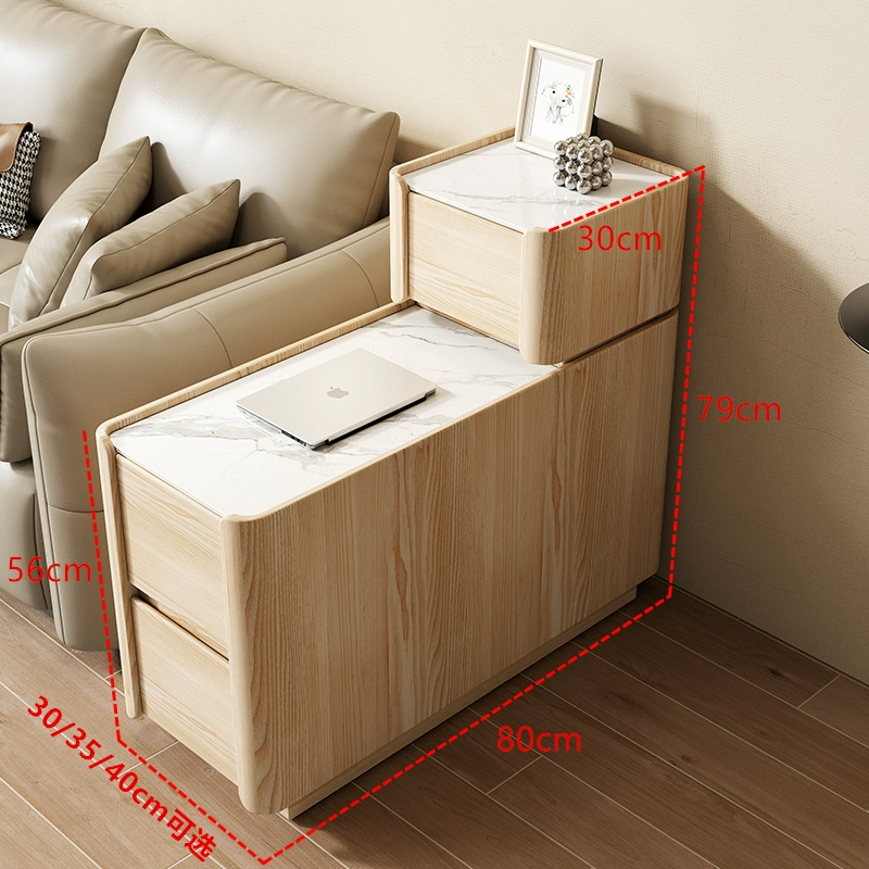 Cream-style solid wood sandwich cabinet with ultra-narrow angle rock panels