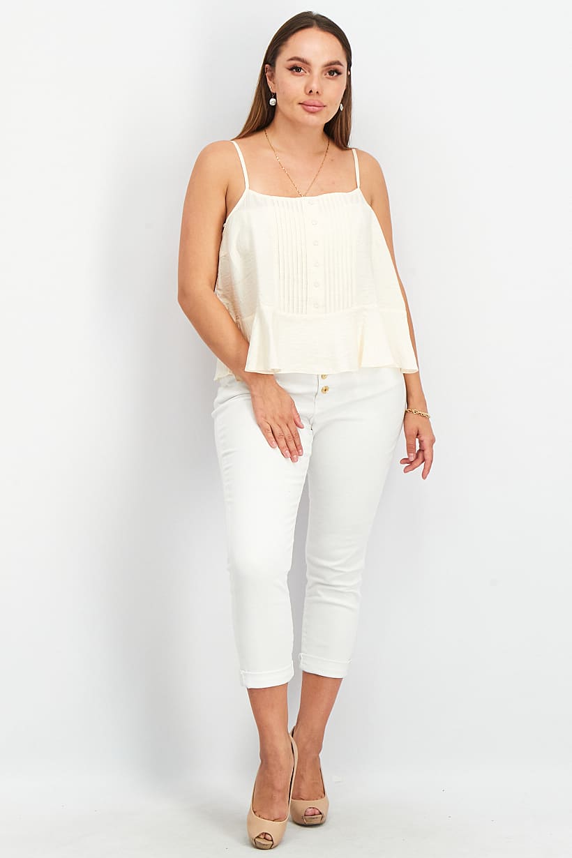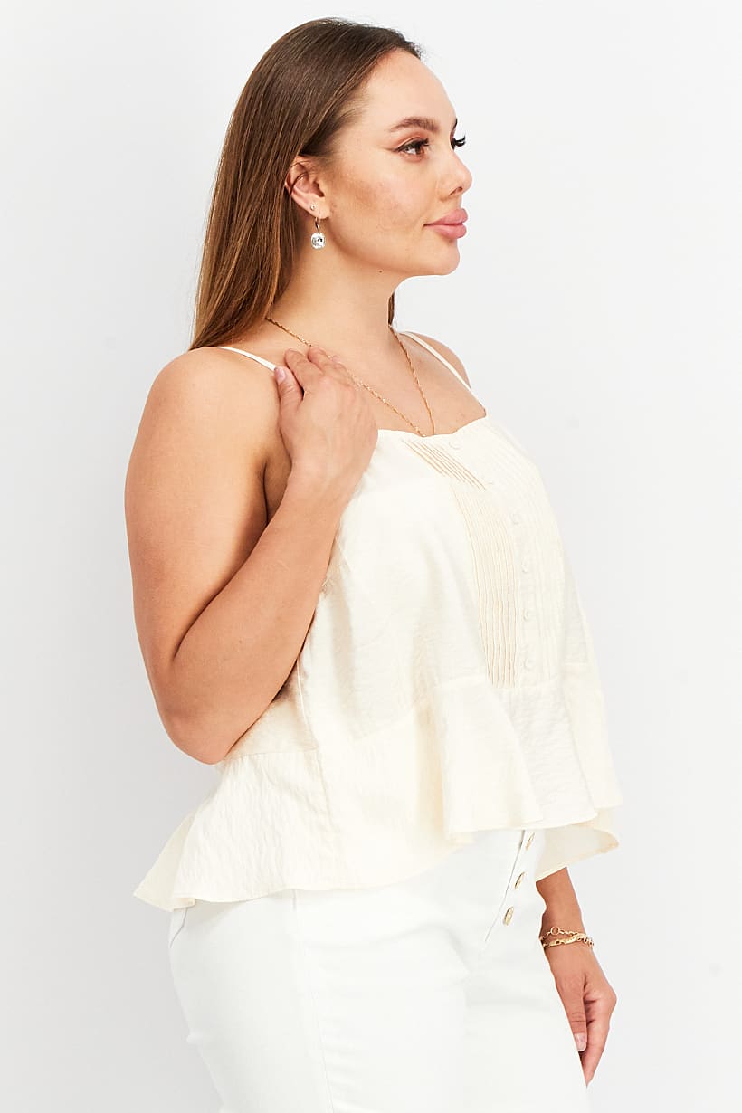 Women Clothing, Tops & Tees, women square neck sleeveless textured crop top cream