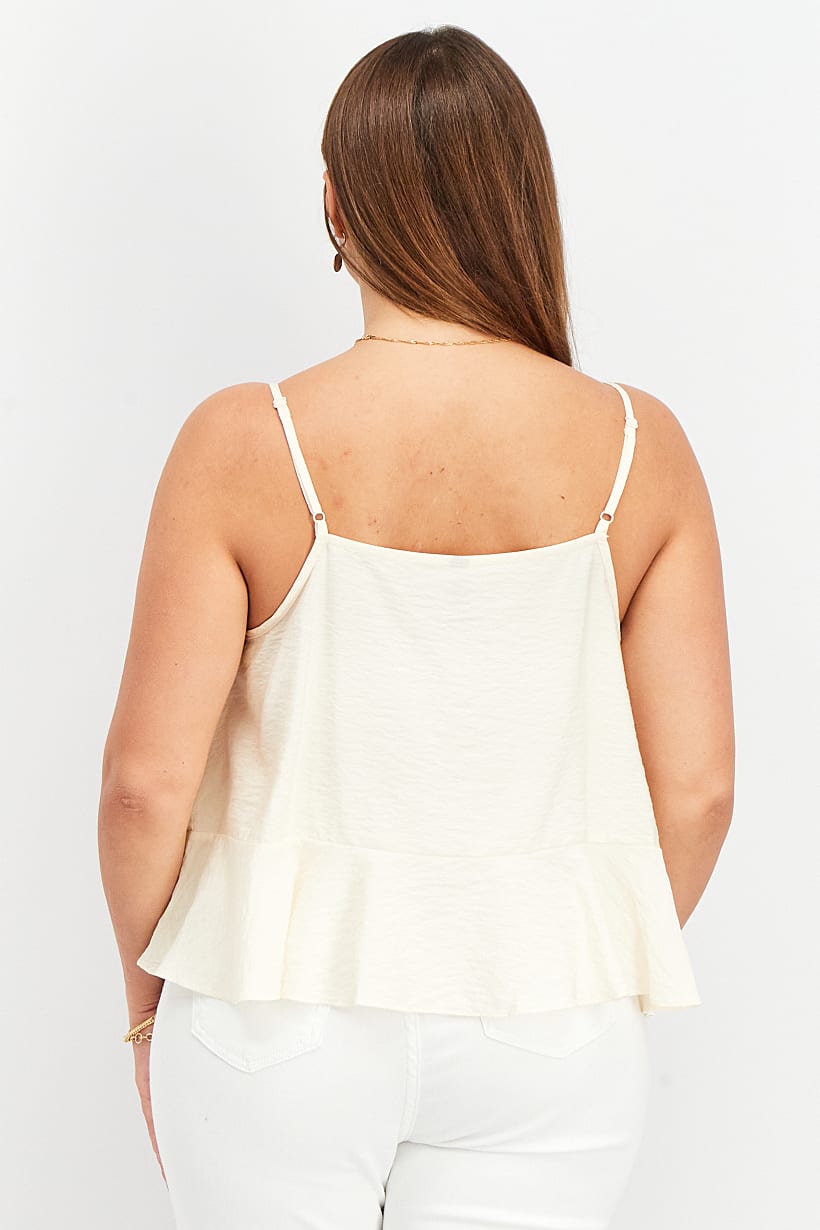 Women Square Neck Sleeveless Textured Crop Top, Cream