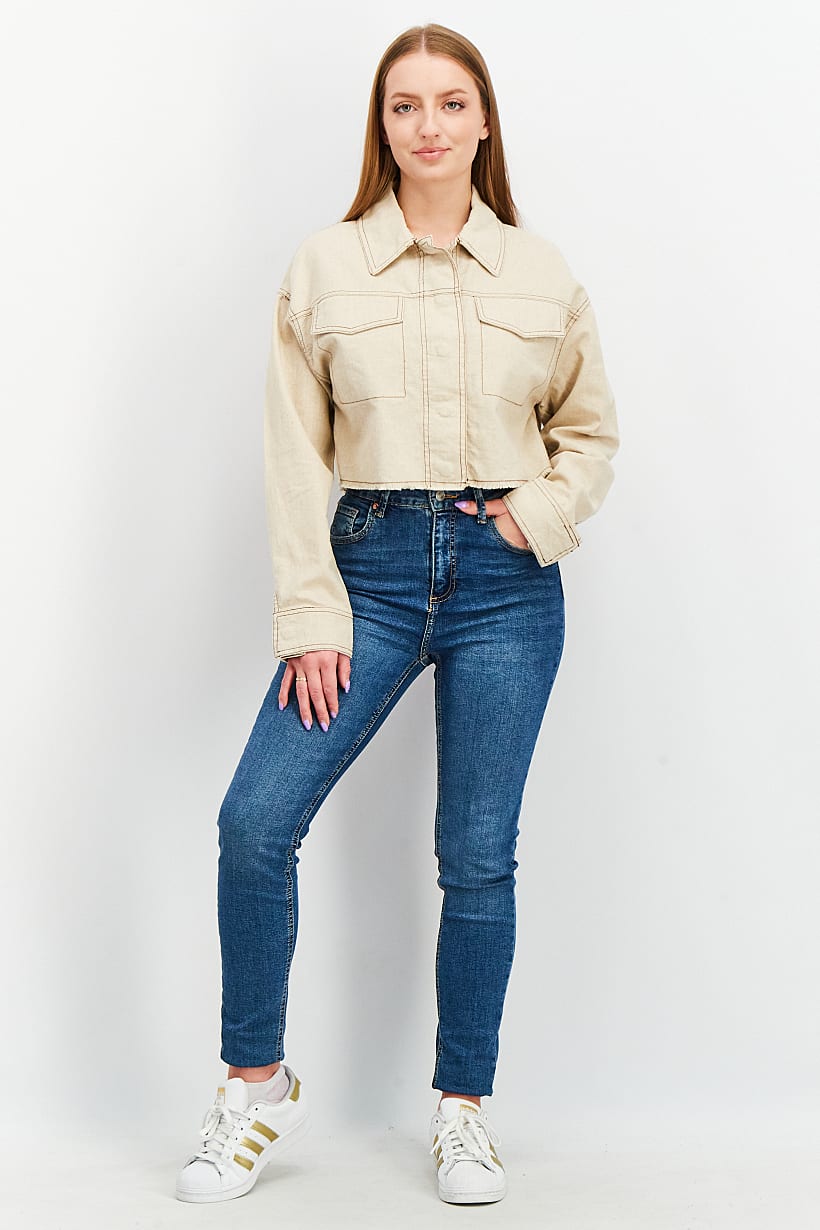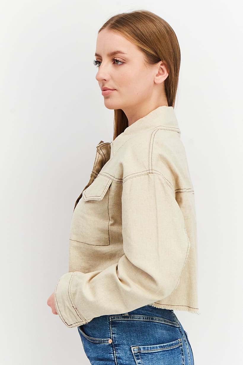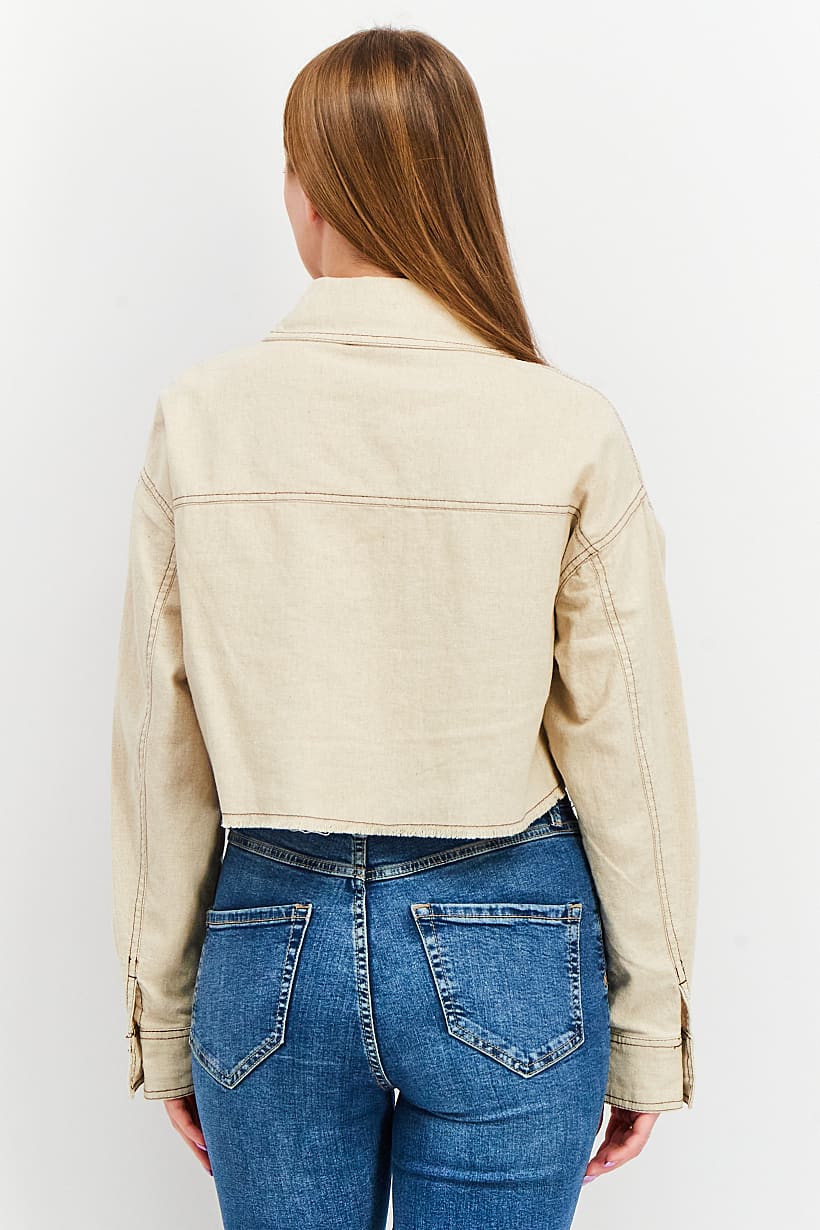 | descriptionOriginal | Care : Machine washable, Ideal For : Women, Jacket Style : Denim, Size shown : US, Sleeve Length : Long Sleeve, Thickness : Medium, Type of Jackets : Jackets, Types of Hem : Distressed hem, Types of Neckline & Collar : Spread collar , Disclaimer : Product color may slightly vary due to photographic lighting sources or your monitor settings., Fabrics : 53% Linen, 47% Cotton, Occasion : Casual, Pattern & Print : Plain/Solid, Type of Sleeve : Long sleeve , Types of Closures : Snap button, Color Family : Cream, |