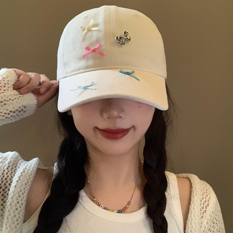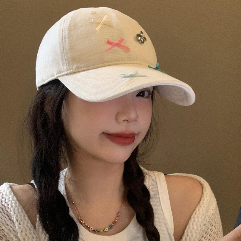 | nameOriginal | Creamy-white bowknot baseball cap women's all-match cute big head circumference face-looking small peaked cap wide brim big face hat |