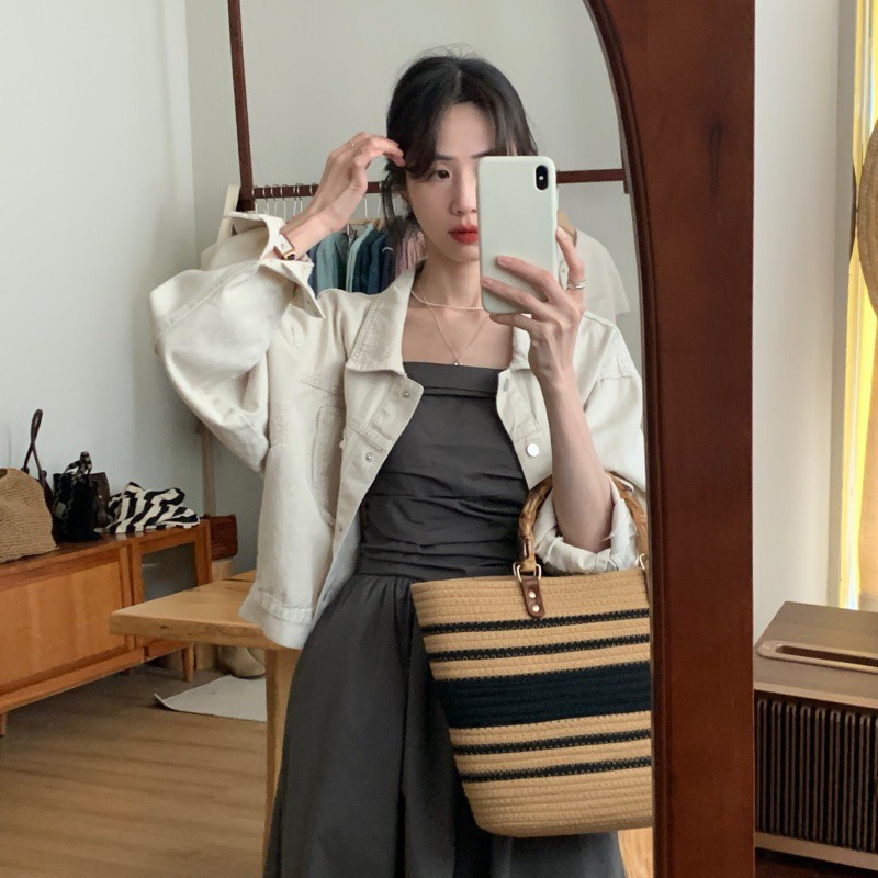 creamy-white Casual Denim Coat Women's 2024 Spring and Autumn New Korean Style Design Tassel Small Jacket Top