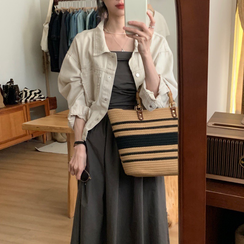 creamy-white Casual Denim Coat Women’s 2024 Spring and Autumn New Korean Style Design Tassel Small Jacket Top
