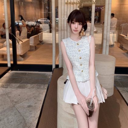 | nameOriginal | Creamy white fragrant gold button vest ladies top |