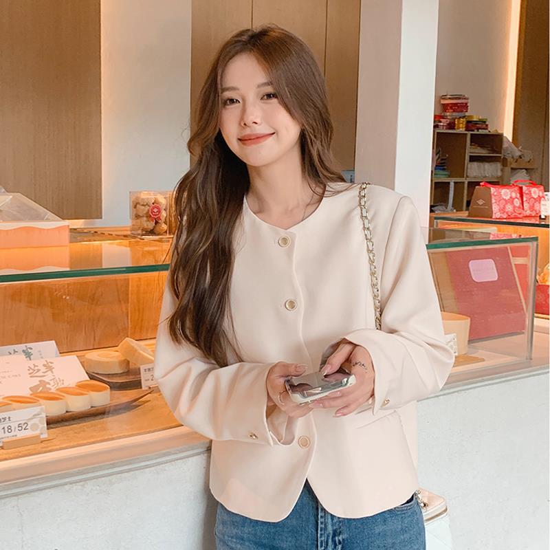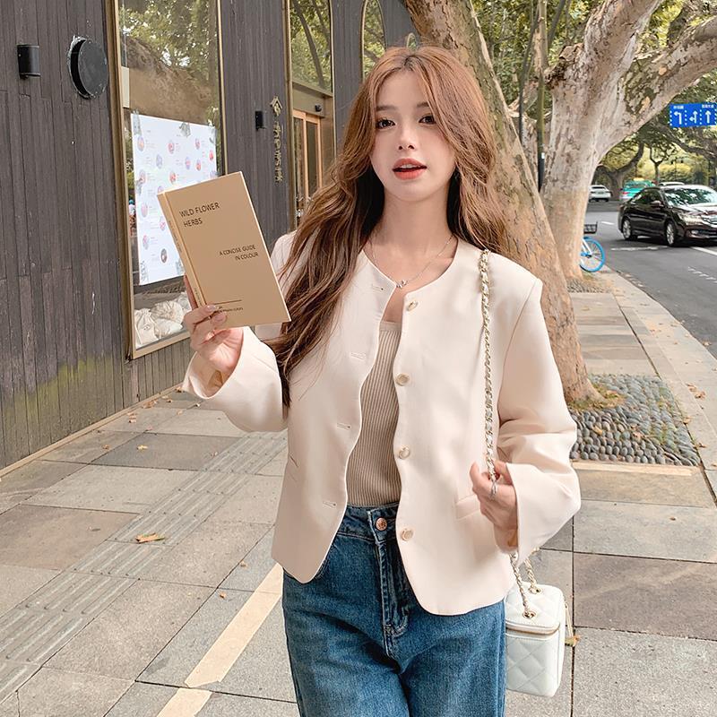 | nameOriginal | Creamy-white gold style round neck small suit jacket women's short 2024 spring new French socialite small top |