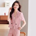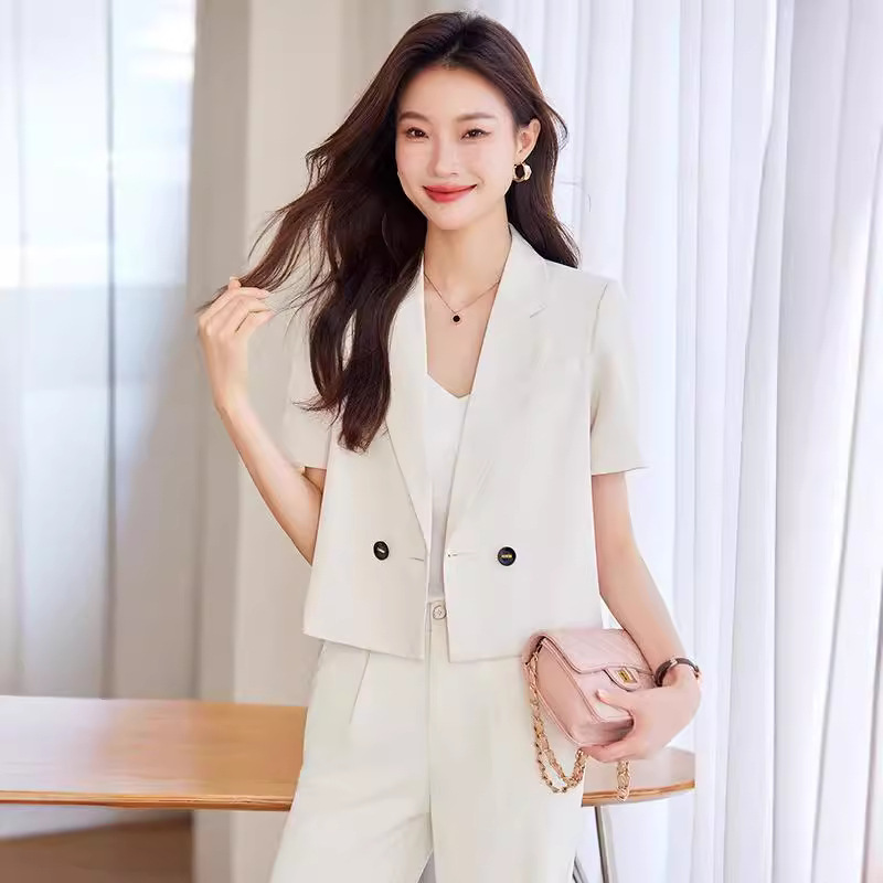 | nameOriginal | creamy-white Short Small Suit Jacket Women's New Korean Style Petite Age-reducing Double-breasted All-match Suit Two-piece Set |