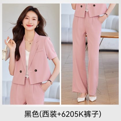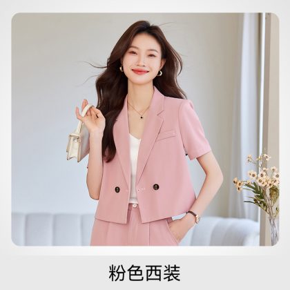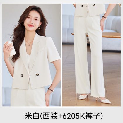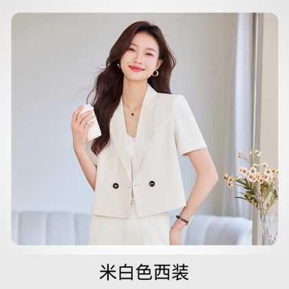 | nameOriginal | creamy-white Short Small Suit Jacket Women's New Korean Style Petite Age-reducing Double-breasted All-match Suit Two-piece Set |