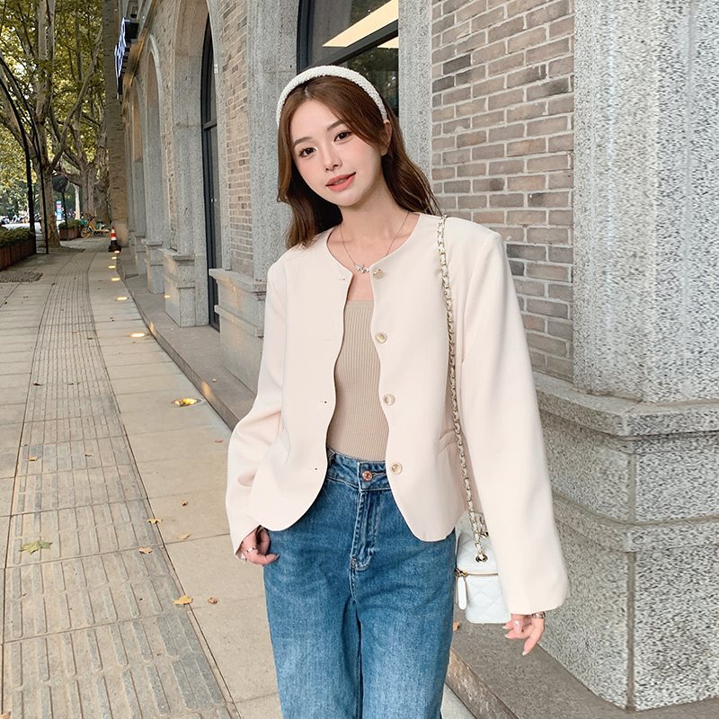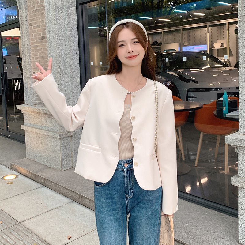 | nameOriginal | creamy-white-style Collarless Small Suit Jacket Women's Short 2024 Spring New French Style Socialite Small Top |