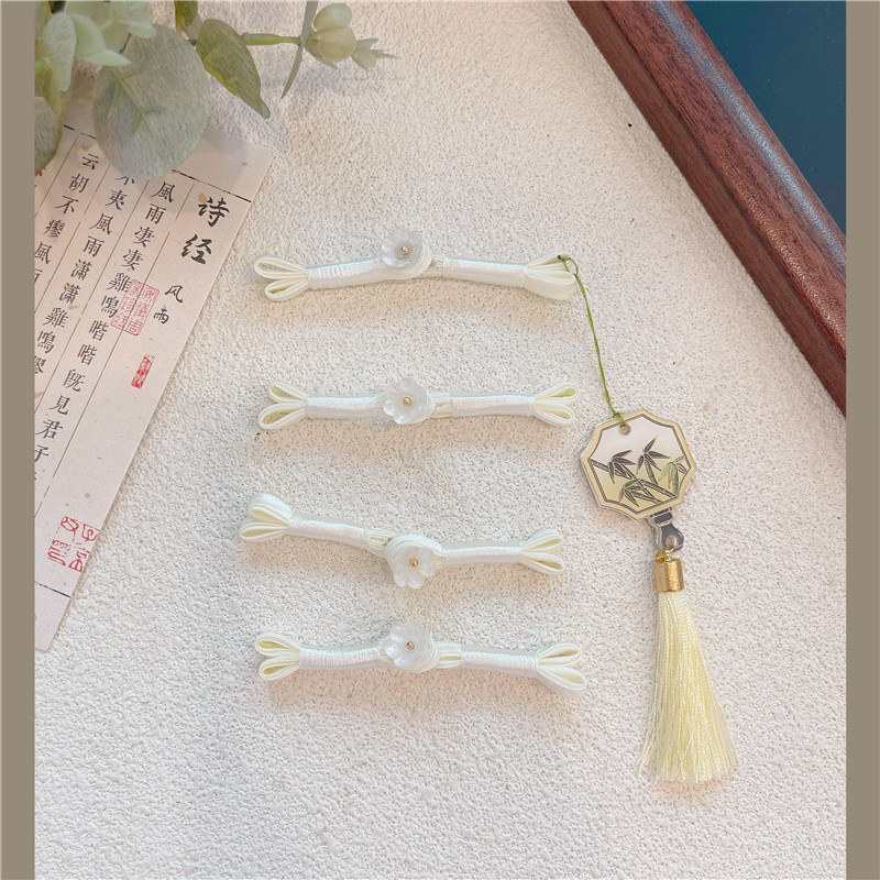 creamy-white Style Dovetail Buckle Tassel Bamboo Leaf Fluttering Buckle New Chinese Button Decorative Button Cheongsam Hanfu Improvement
