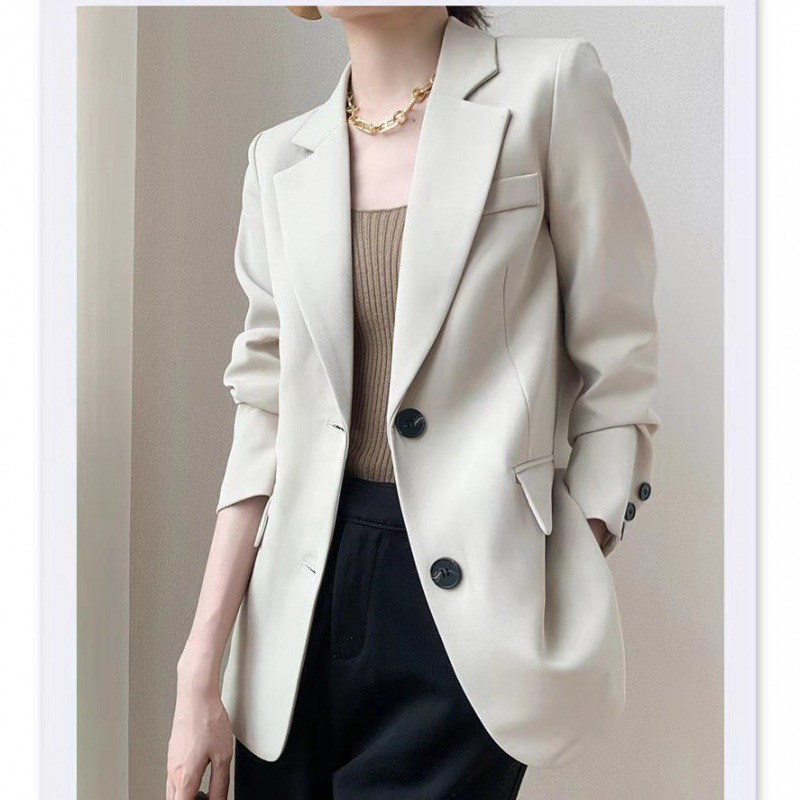 Creamy-white suit jacket 2023 spring and autumn suit new style small online popular fried street design sense niche top
