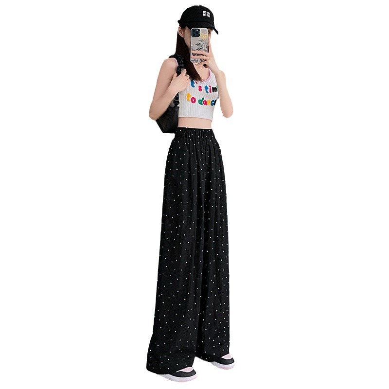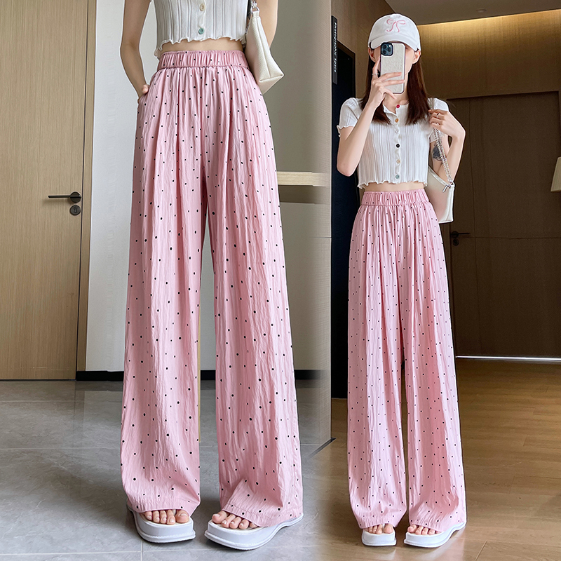 | nameOriginal | creamy-white Wave Dot Ice Silk Cotton and Linen Wide Leg Pants Women's Summer Thin Pants High Waist Loose Dagging Casual Yamamoto Pants |