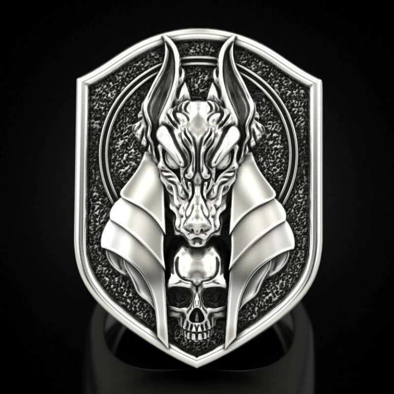 Creative ancient Egyptian mythology god of death Anubis ring men’s retro jackal head body plated 18k gold men’s ring